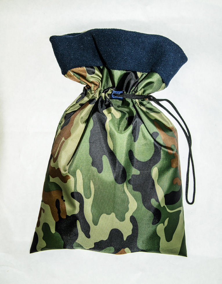 Мешок для подарка из водонепроницаеемой ткани "дюспо" цвета хаки. Верхняя часть мешочка отделана флисом. Для завязывания используется шнурок с фиксатором.