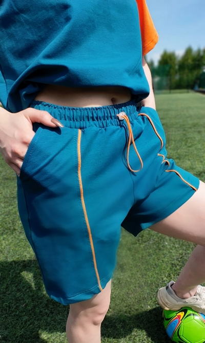 Шорты прямого кроя со средней посадкой — это универсальная и удобная модель, особенно если вы ищете шорты для мерча. На передних половинках присутствует декоративный шов с кантом, застроченный на 0,5 см, что придаёт изделию стильный и аккуратный вид.