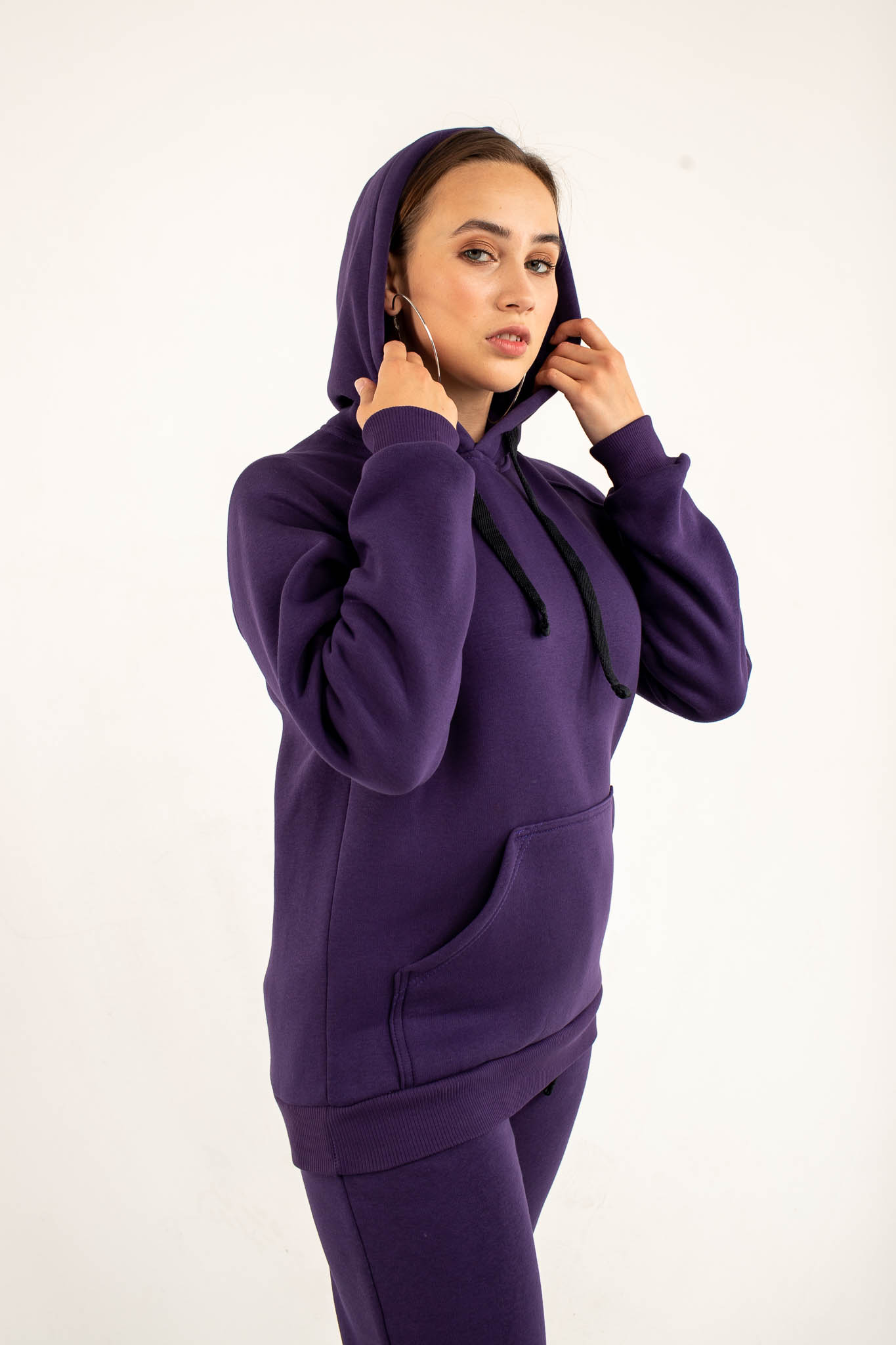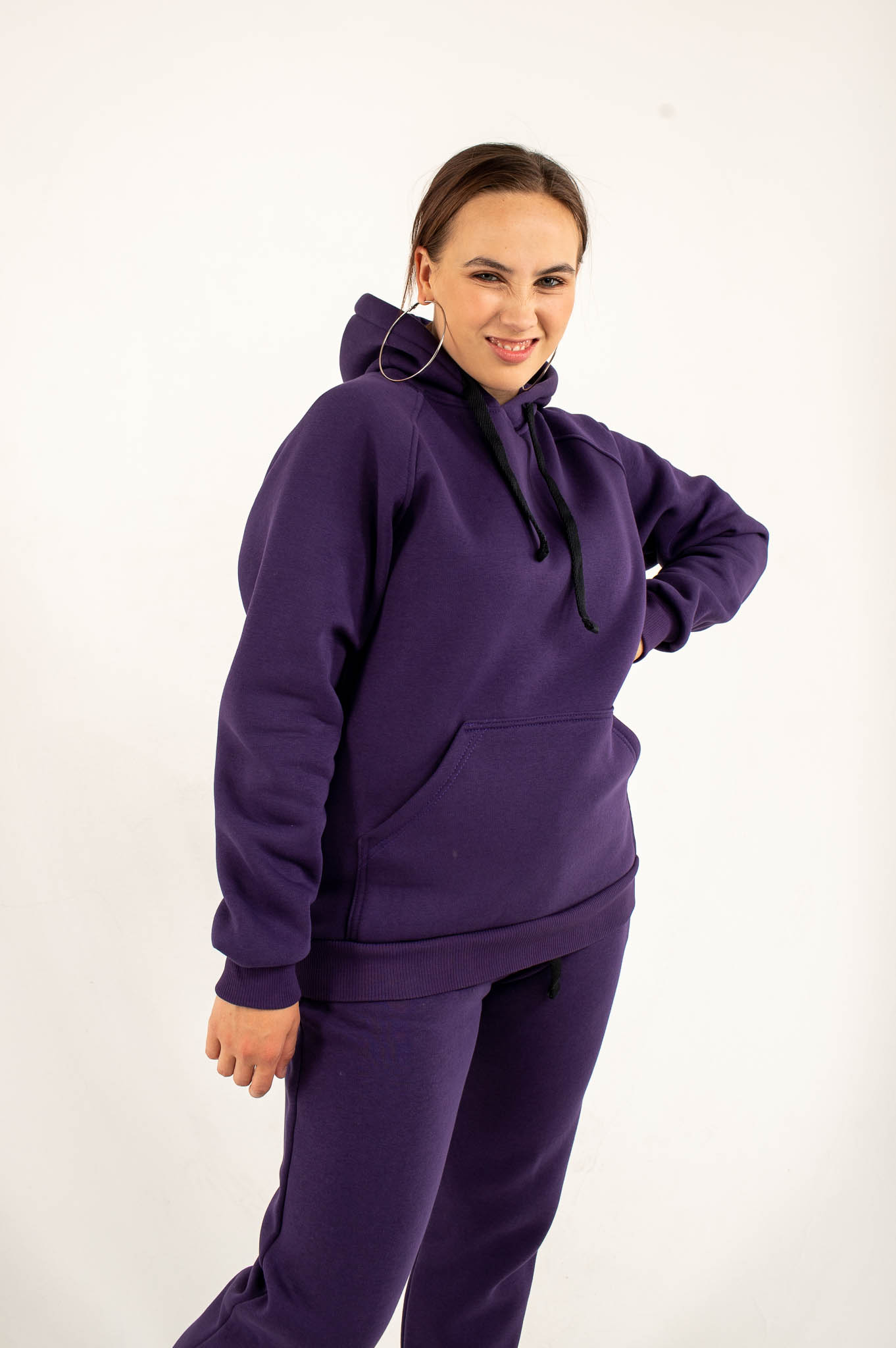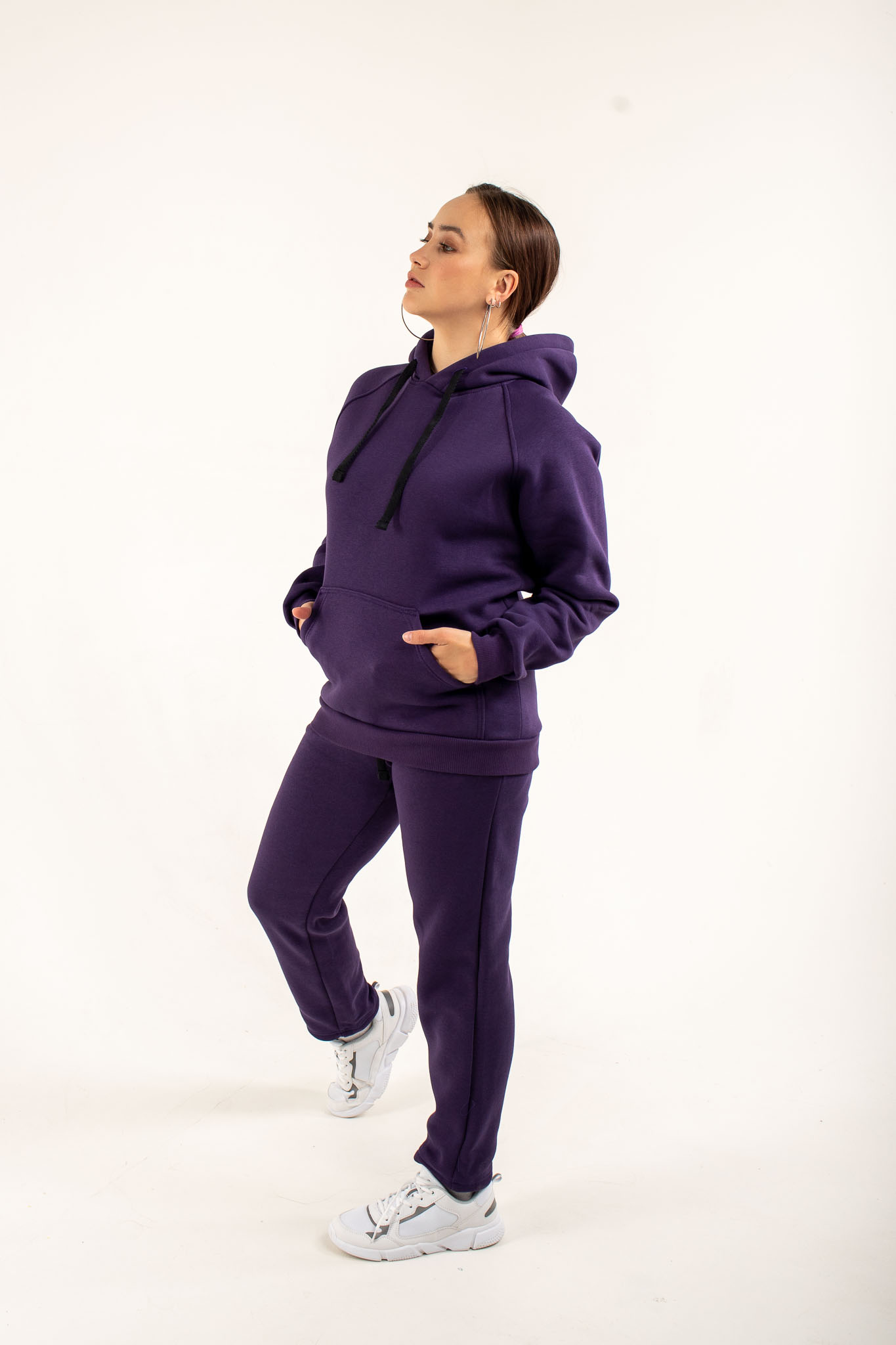 Комплект состоит из худи с капюшоном и рукавом реглан, а также штанов, выполненных из мягкого и плотного футера. Классический крой обеспечивает комфорт и универсальность, что делает этот костюм идеальным для создания единых образов в танцевальных коллективах, рекламных кампаниях, мерче бренда и униформы для малого и среднего бизнеса.