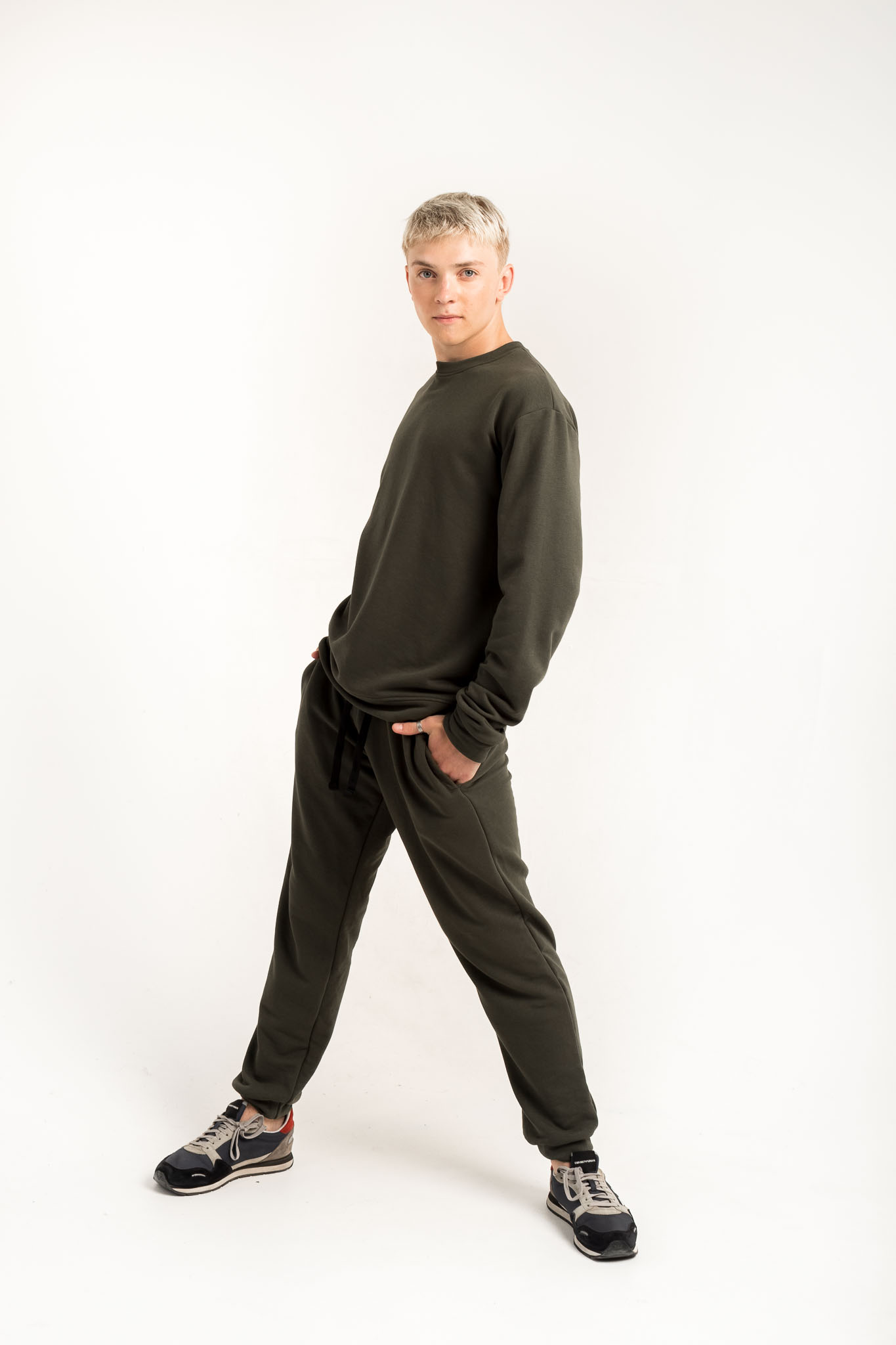 Комплект состоит из свитшота классического кроя и штанов, выполненных из мягкого и плотного футера. Модель отличается лаконичным дизайном, высоким качеством ткани и комфортной посадкой — идеально подходит для создания единых костюмов для танцевальных коллективов, мерча бренда, рекламных кампаний и униформы для малого и среднего бизнеса.
