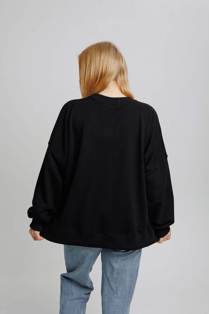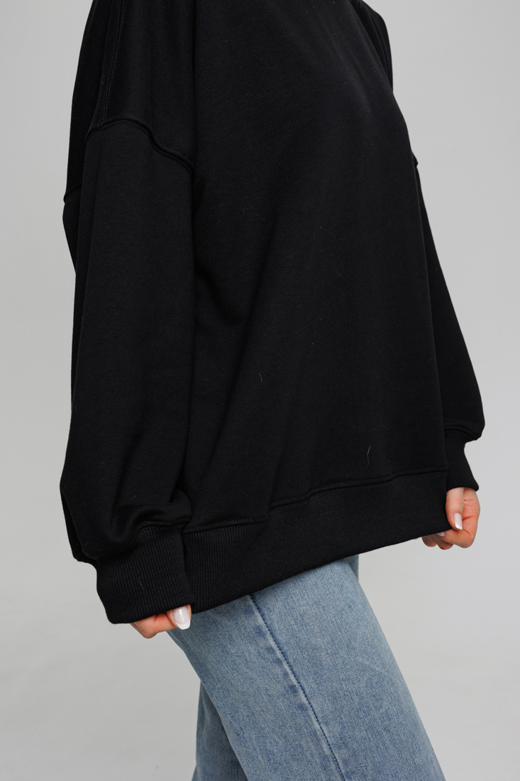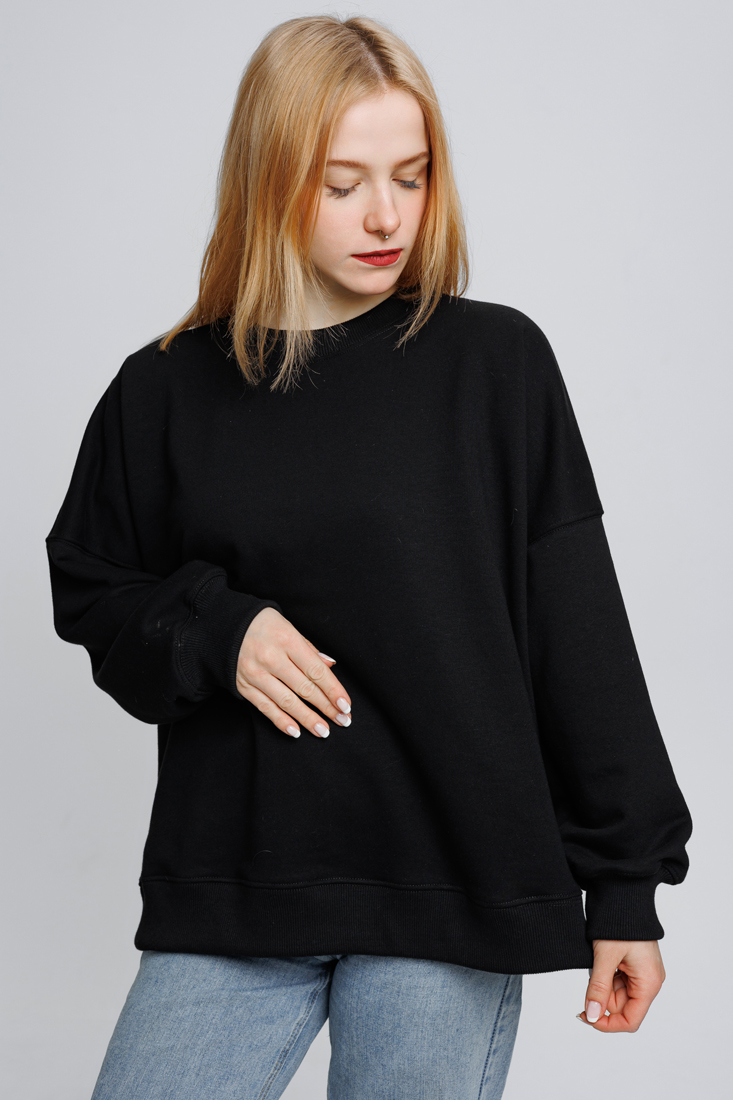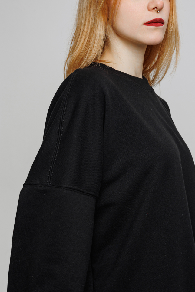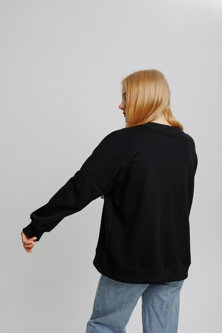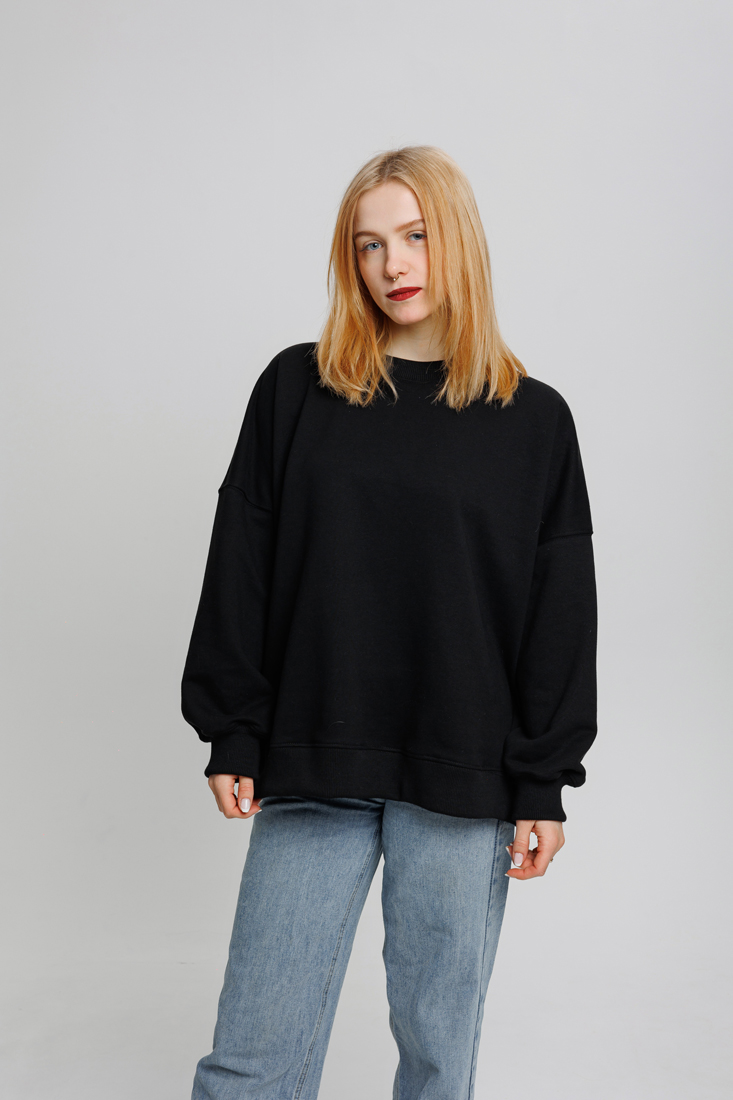 Погрузитесь в мир комфорта и моды с нашим черным унисекс свитшотом оверсайз. Этот свитшот прямого силуэта, длиной до середины бедра, станет идеальным дополнением к вашему гардеробу. Удлиненная линия плеча и втачной рукав придают изделию современный и расслабленный вид, обеспечивая свободу движений и стильный образ. Независимо от вашего стиля, этот свитшот легко впишется в любой образ, добавляя нотку непринужденности и комфорта. Отличный выбор для повседневной носки и создания модных луков!
