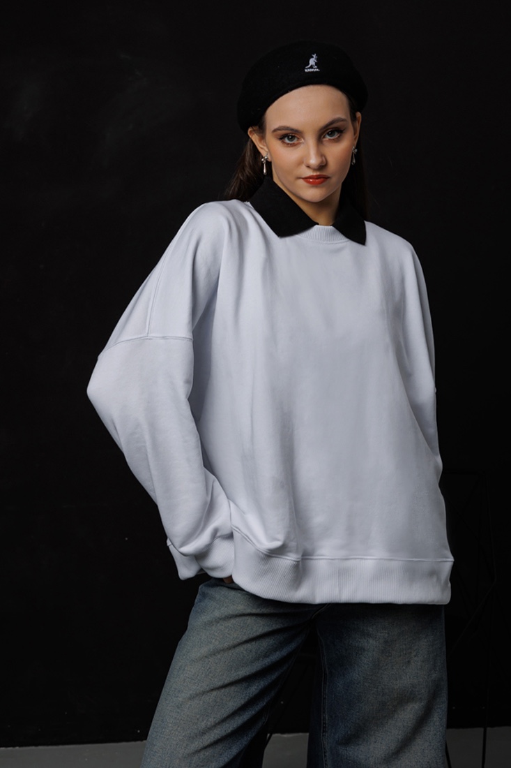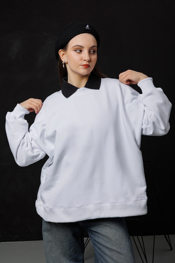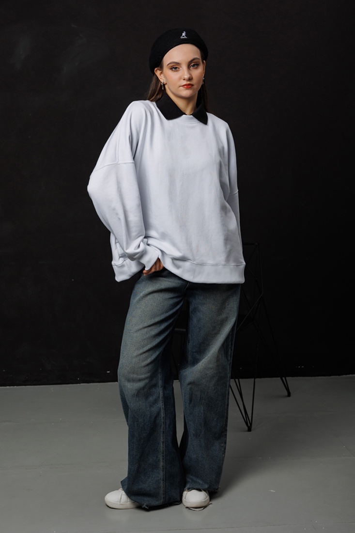 Погрузитесь в мир комфорта и моды с нашим белым унисекс свитшотом оверсайз. Этот свитшот прямого силуэта, длиной до середины бедра, станет идеальным дополнением к вашему гардеробу. Удлиненная линия плеча и втачной рукав придают изделию современный и расслабленный вид, обеспечивая свободу движений и стильный образ. Независимо от вашего стиля, этот свитшот легко впишется в любой образ, добавляя нотку непринужденности и комфорта. Отличный выбор для повседневной носки и создания модных луков!