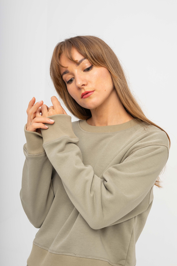 Откройте для себя идеальный свитшот оверсайз прямого силуэта! Укороченный дизайн с спущенной линией плеча обеспечивает свободу движений. Удобная горловина, обработанная кашкорсе, и манжеты шириной 7 см придают элегантность и комфорт. Рукава с рельефом и аккуратный шов, закрытый киперной лентой, делают модель уникальной.