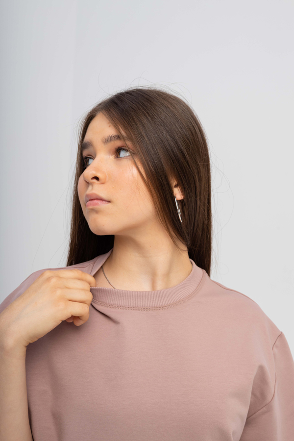 - Спущенная линия плеча: придаёт образу расслабленный и модный вид.