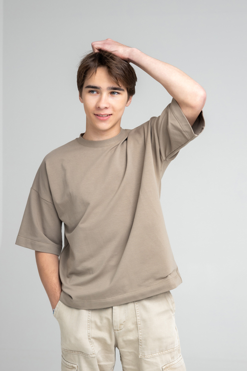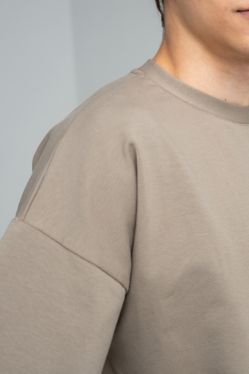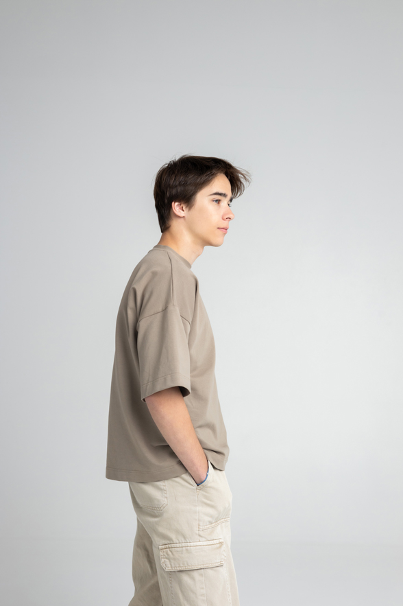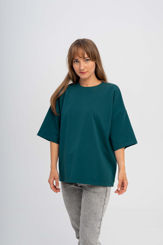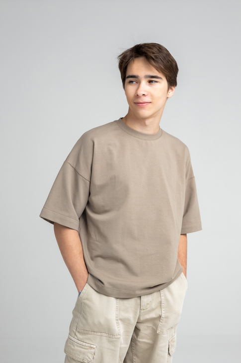 Прокачайте свой стиль с нашей унисекс футболкой оверсайз! Эта модель — воплощение комфорта и моды: прямой силуэт, удлиненное плечо и спущенная пройма создают ультрасовременный вид. Длина до бедра делает её идеальной для любого образа. Горловина из кашкорсе с изящной отстрочкой и скрытым швом на спинке добавляет изюминку. Рукава до локтя и аккуратная обработка низа на плоскошовной машине завершают этот стильный шедевр. Будьте в тренде каждый день!