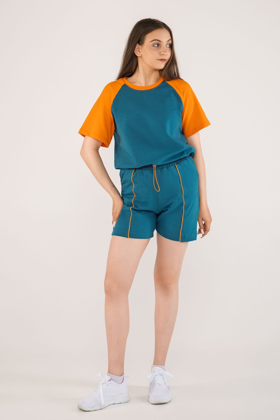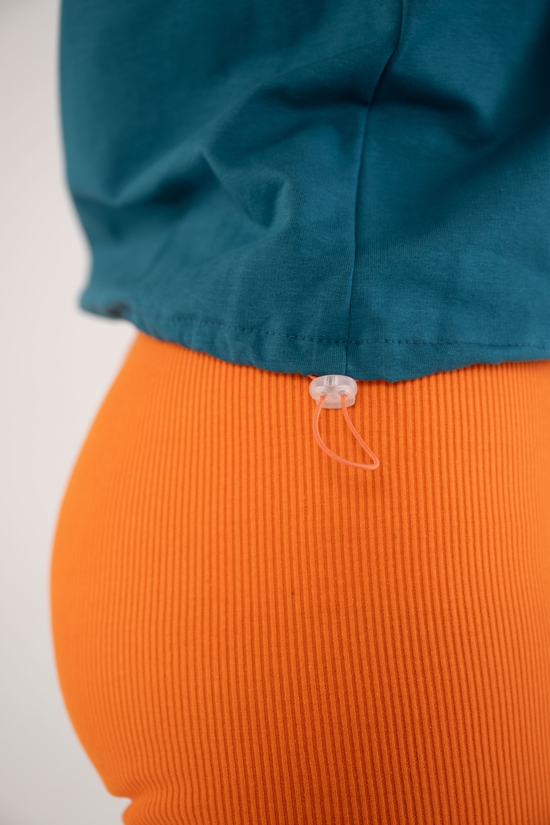 Женская укороченная футболка умеренного объема — это идеальное сочетание стиля, удобства и функциональности. Модель с рукавами реглан и низом вподгибку шириной 2 см обеспечивает свободу движений и комфорт в носке. Низ изделия оснащён кулиской с регулируемой резинкой и фиксаторами, что позволяет подстроить посадку под индивидуальные предпочтения.