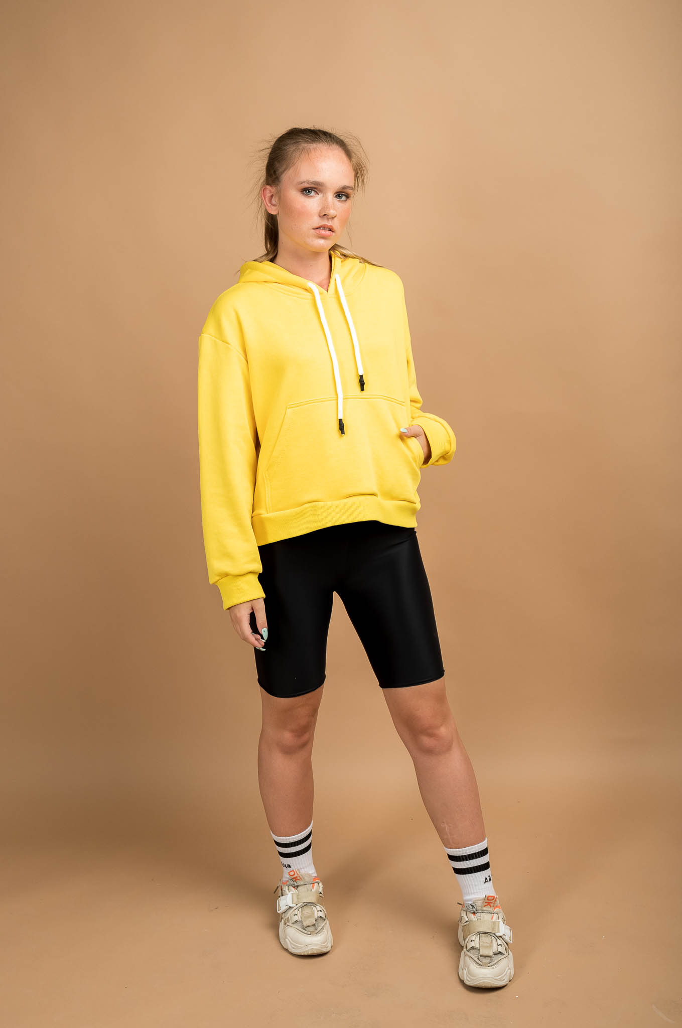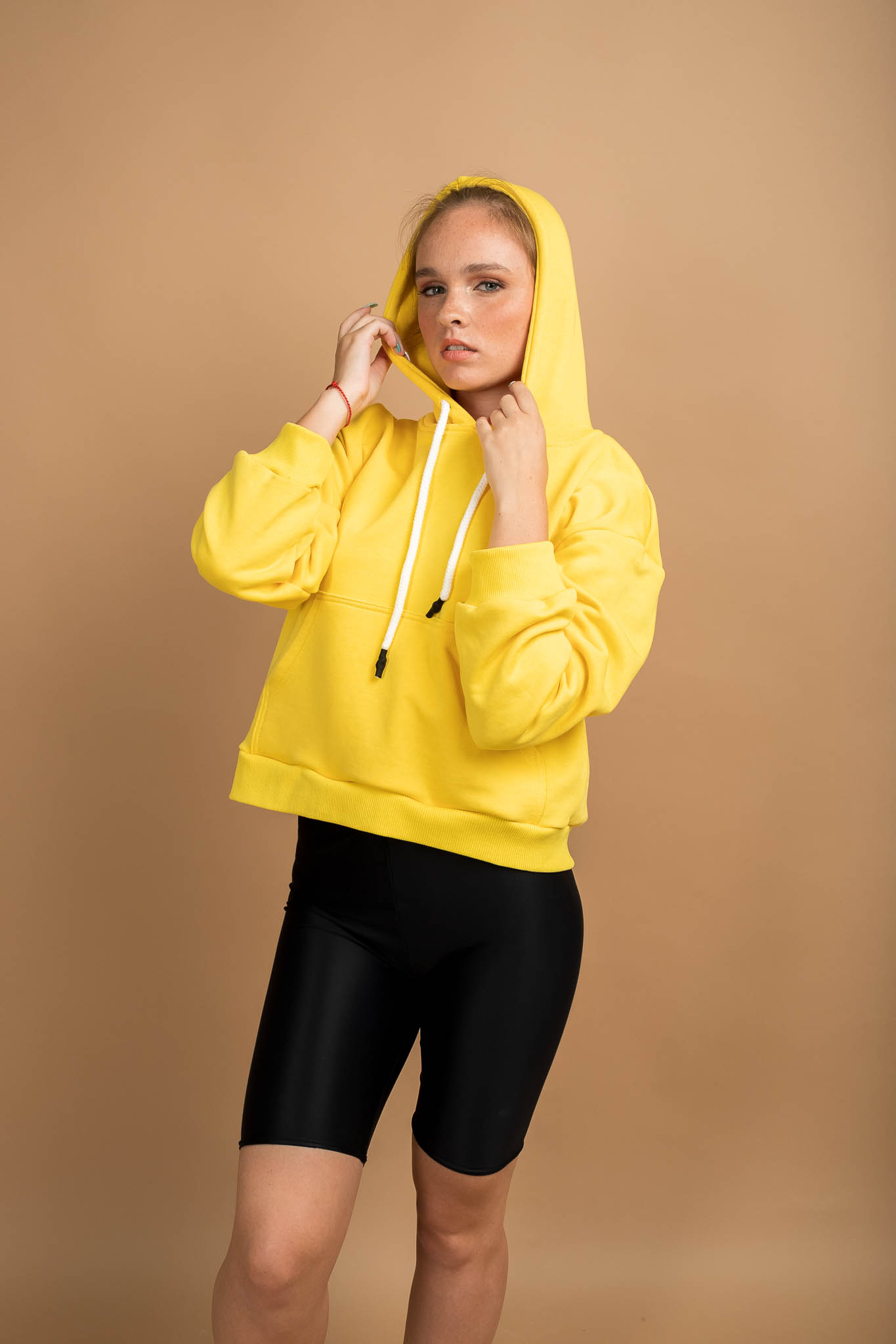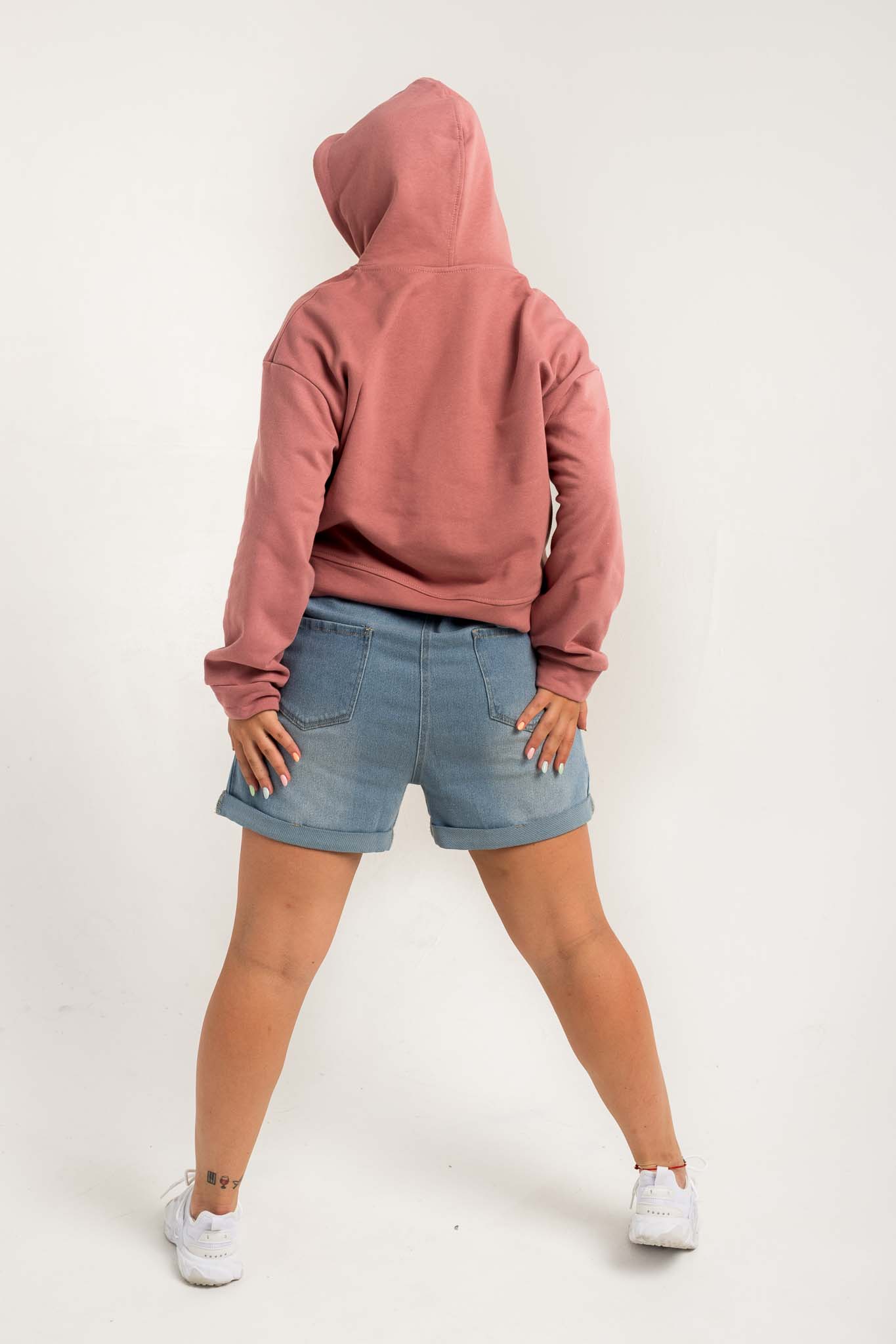 Толстовка HoodyOversize - Худи женское оверсайз, на полочке размещен накладной карман «кенгуру», горловина имеет втачной капюшон из двух деталей с подкладкой из основной ткани, имеет кулиску со шнуром, вставленным в выметанные петли. Верхний капюшон отстрочен по среднему шву ш/ш 0,5 см. Рукав втачной со спущенной линией плеча, низ обработан манжетой из кашкорсе. Длина изделия чуть ниже линии талии, низ обработан поясом из кашкорсе. Шов горловины усилен киперной лентой, декоративная отстрочка по горловине ширина шва 0,5 см