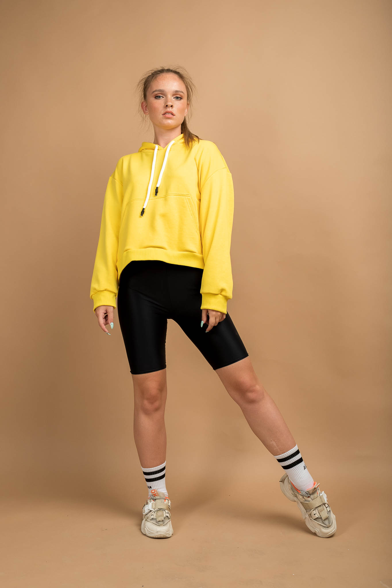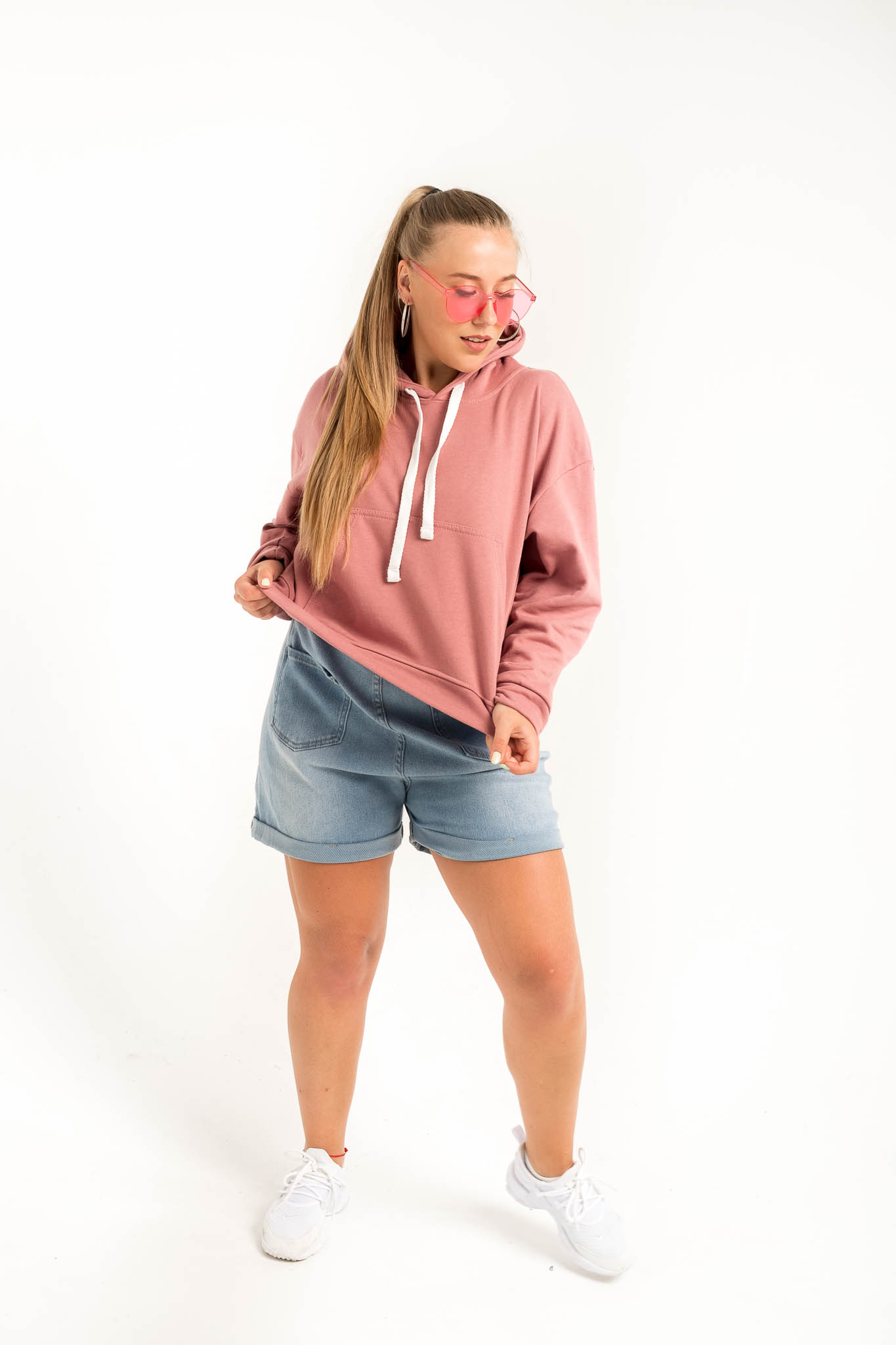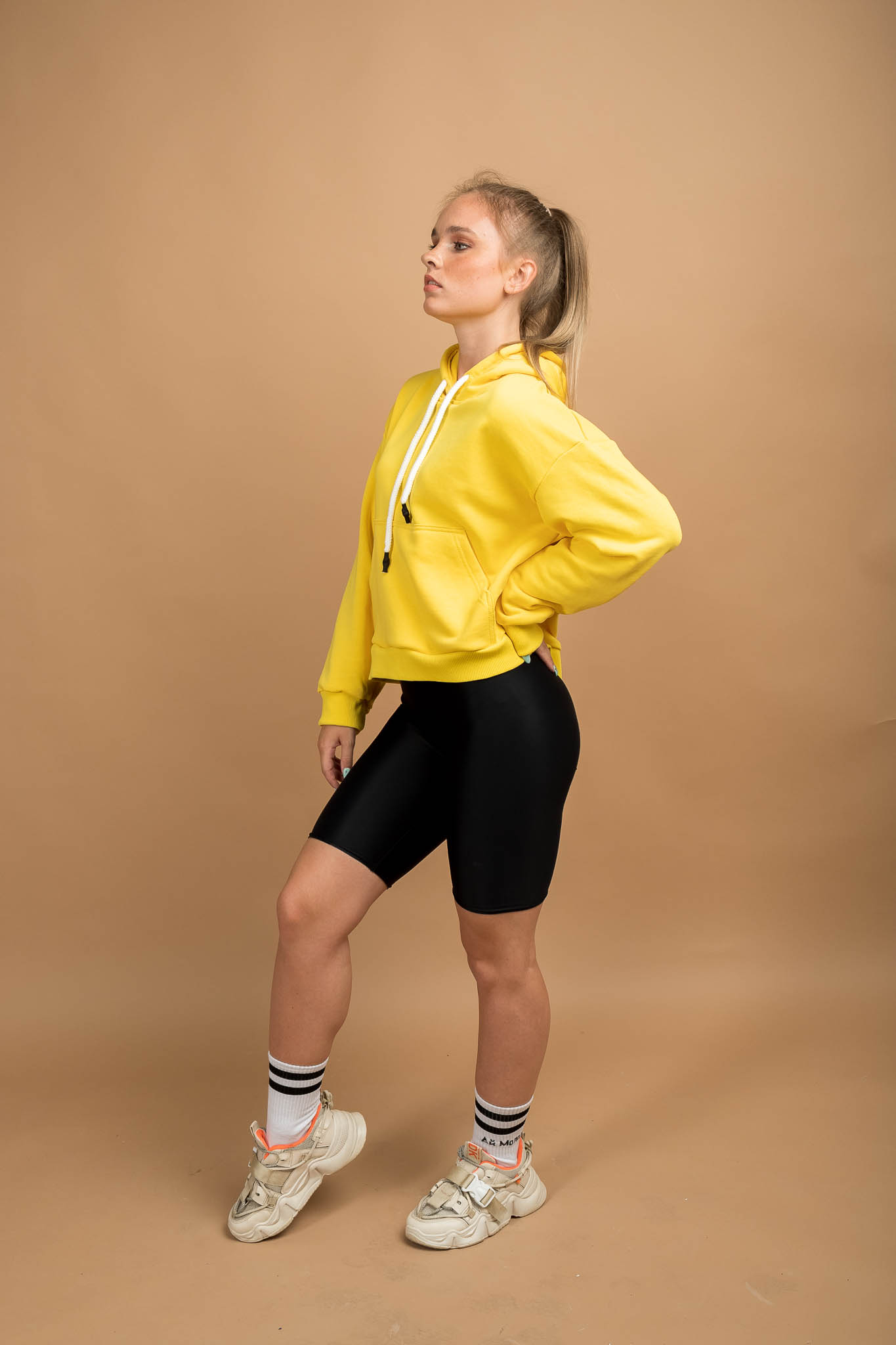 Толстовка HoodyOversize - Худи женское оверсайз, на полочке размещен накладной карман «кенгуру», горловина имеет втачной капюшон из двух деталей с подкладкой из основной ткани, имеет кулиску со шнуром, вставленным в выметанные петли. Верхний капюшон отстрочен по среднему шву ш/ш 0,5 см. Рукав втачной со спущенной линией плеча, низ обработан манжетой из кашкорсе. Длина изделия чуть ниже линии талии, низ обработан поясом из кашкорсе. Шов горловины усилен киперной лентой, декоративная отстрочка по горловине ширина шва 0,5 см