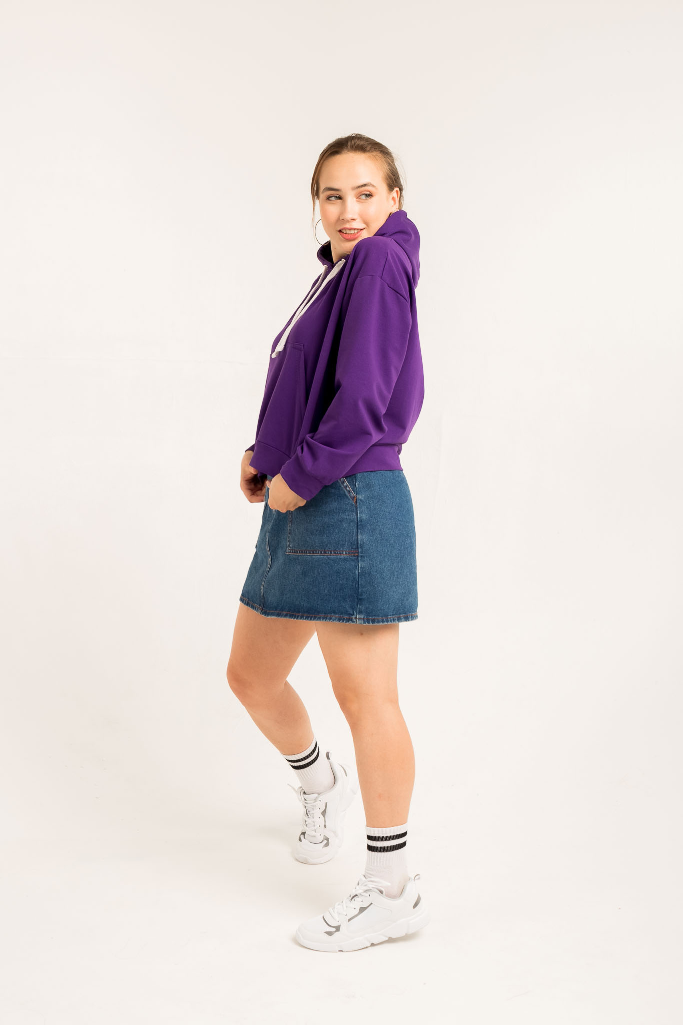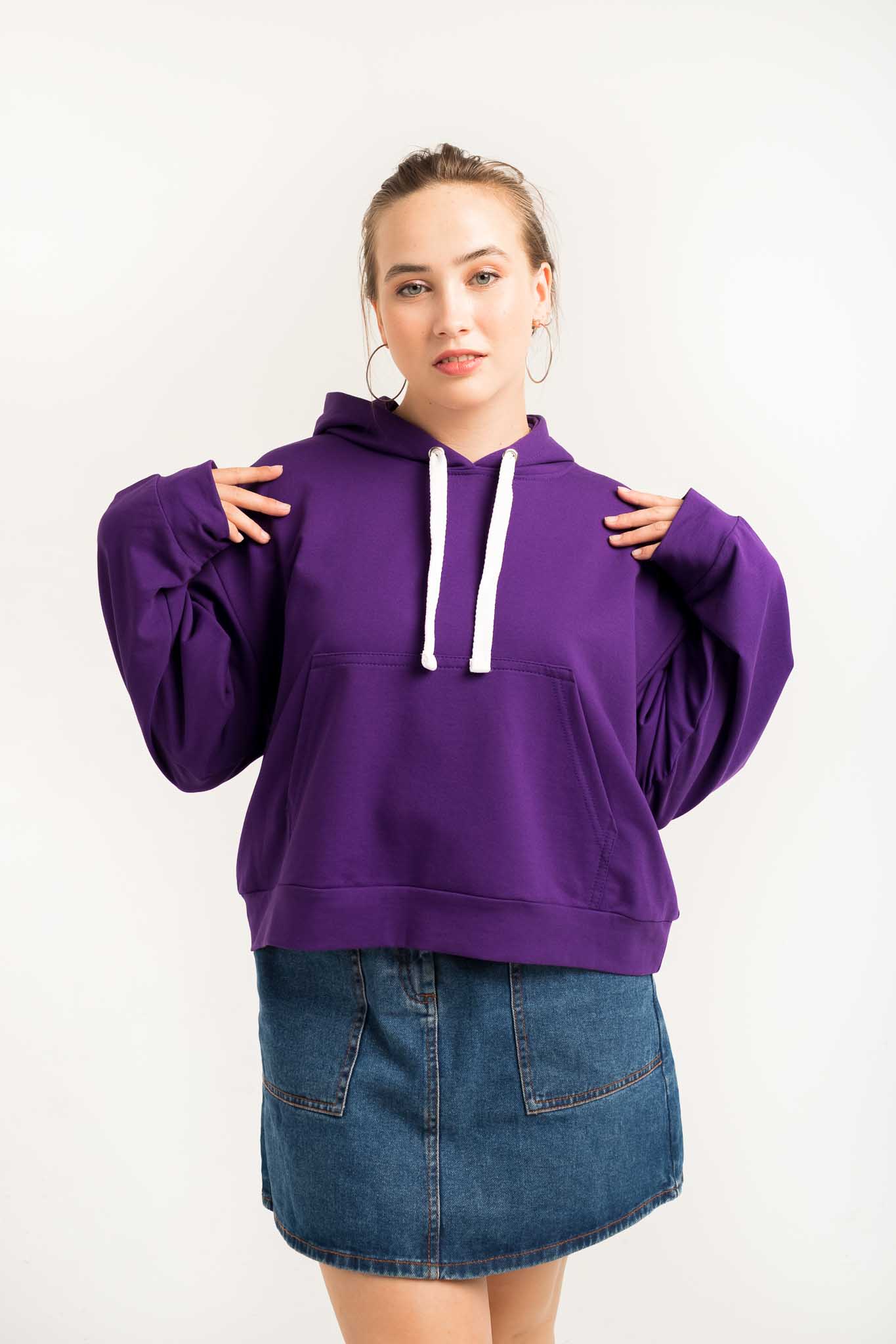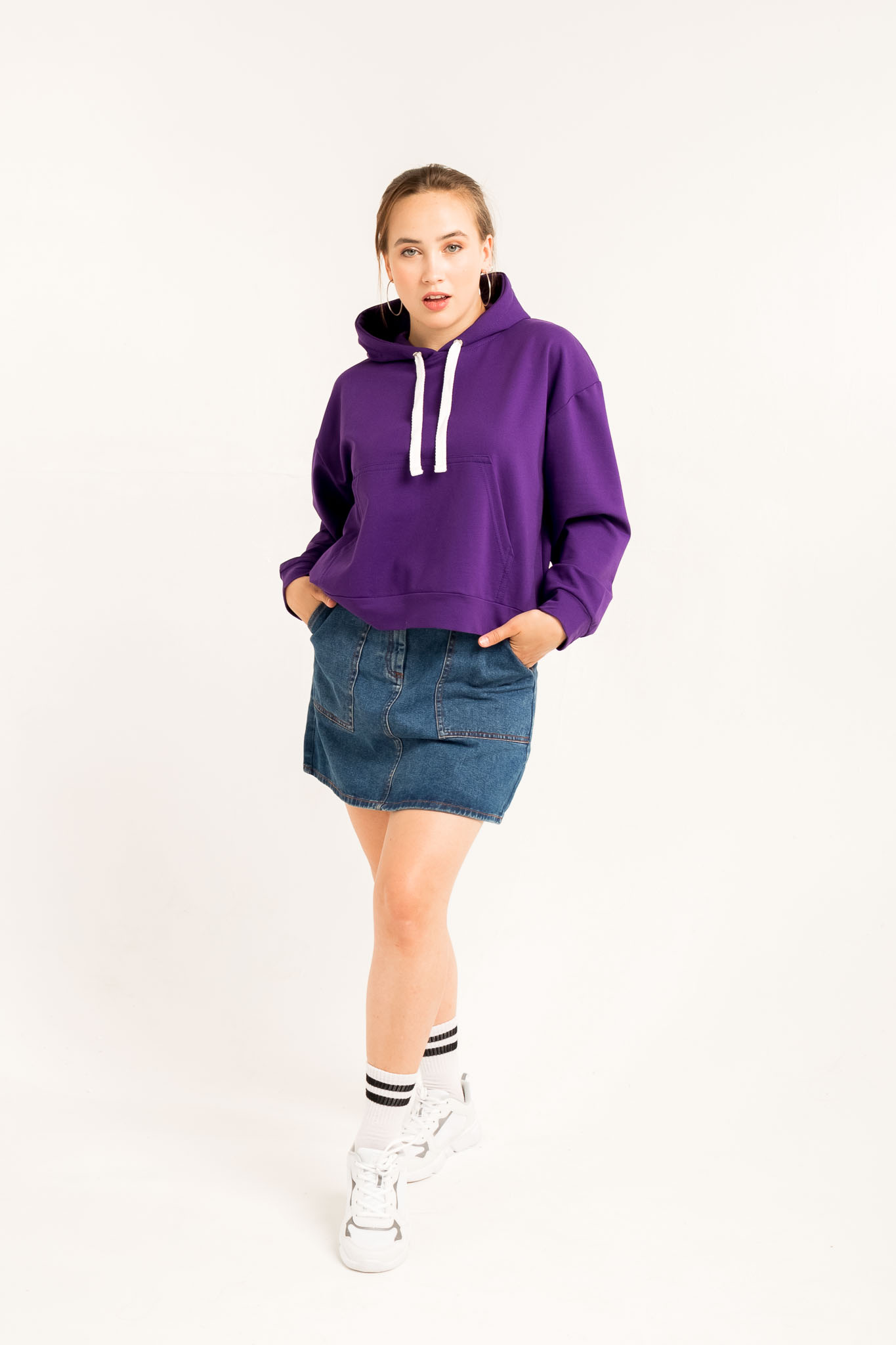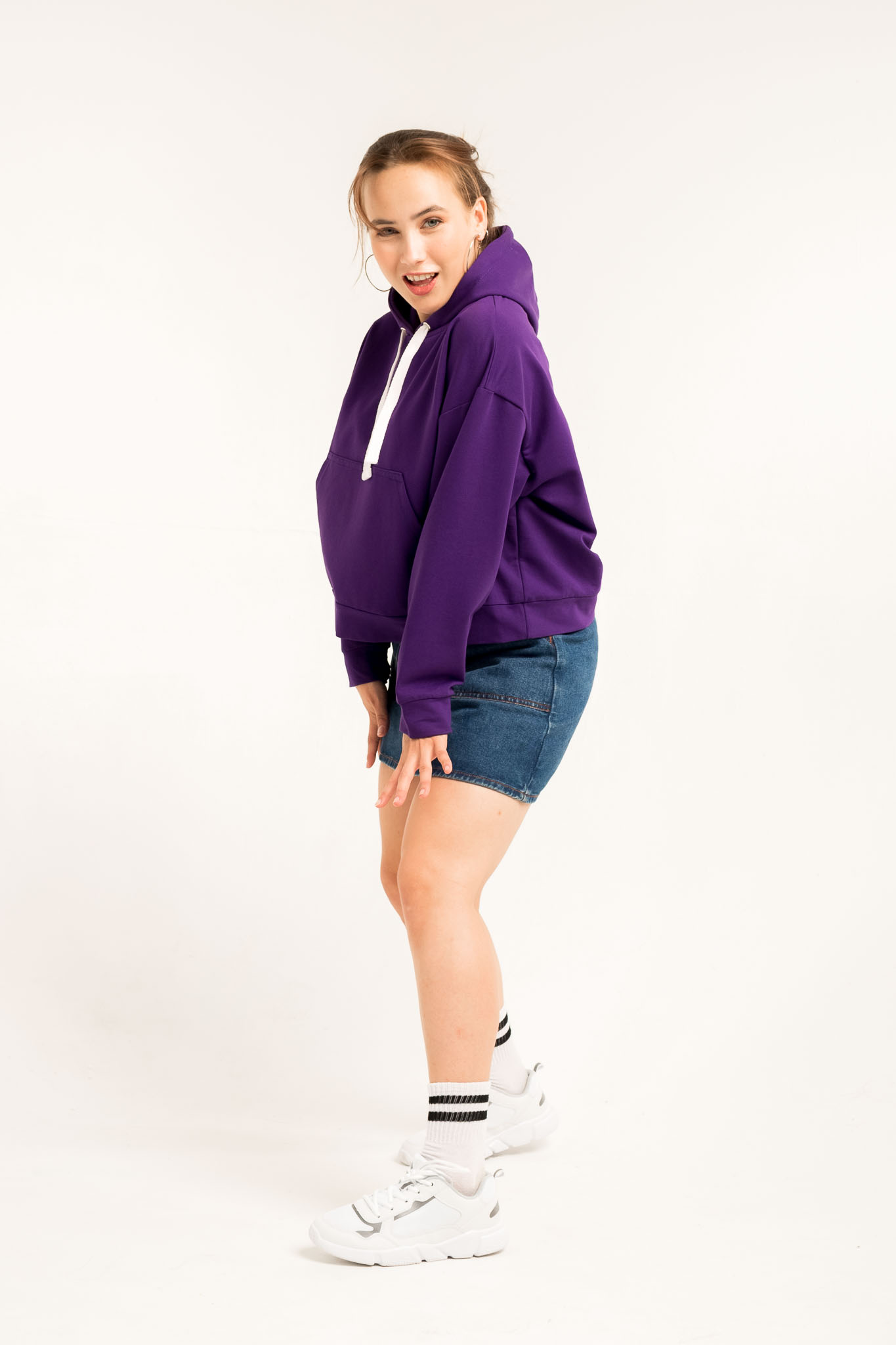 Толстовка HoodyOversize II - Худи женское оверсайз, на полочке размещен накладной карман «кенгуру», горловина имеет втачной капюшон из двух деталей с подкладкой из основной ткани, имеет кулиску со шнуром, вставленным в выметанные петли. Верхний капюшон отстрочен по среднему шву ш/ш 0,5 см. Рукав втачной со спущенной линией плеча, низ обработан манжетой из основной ткани. Длина изделия чуть ниже линии талии, низ обработан поясом из основной ткани. Шов горловины усилен киперной лентой, декоративная отстрочка по горловине ширина шва 0,5 см.