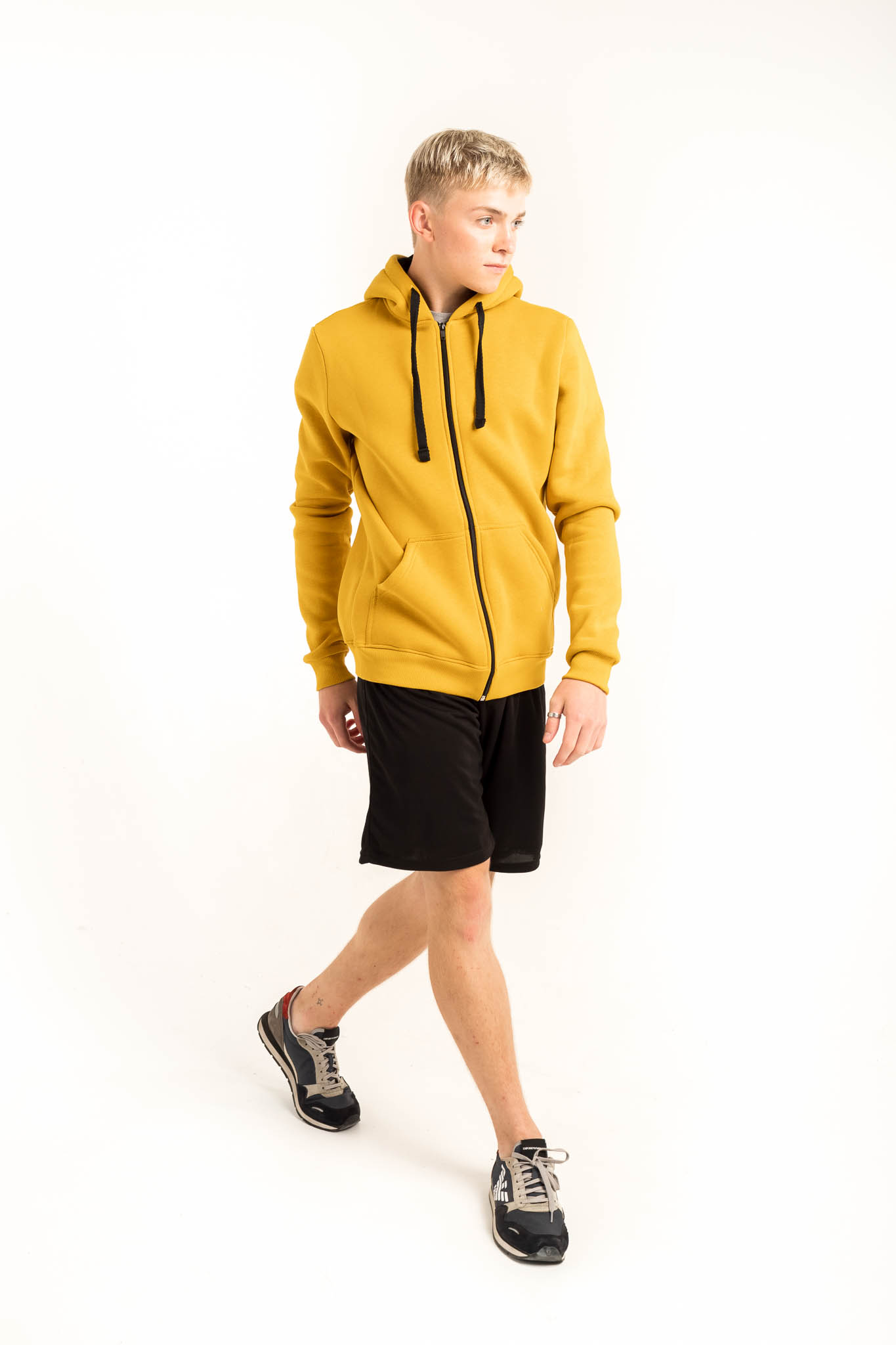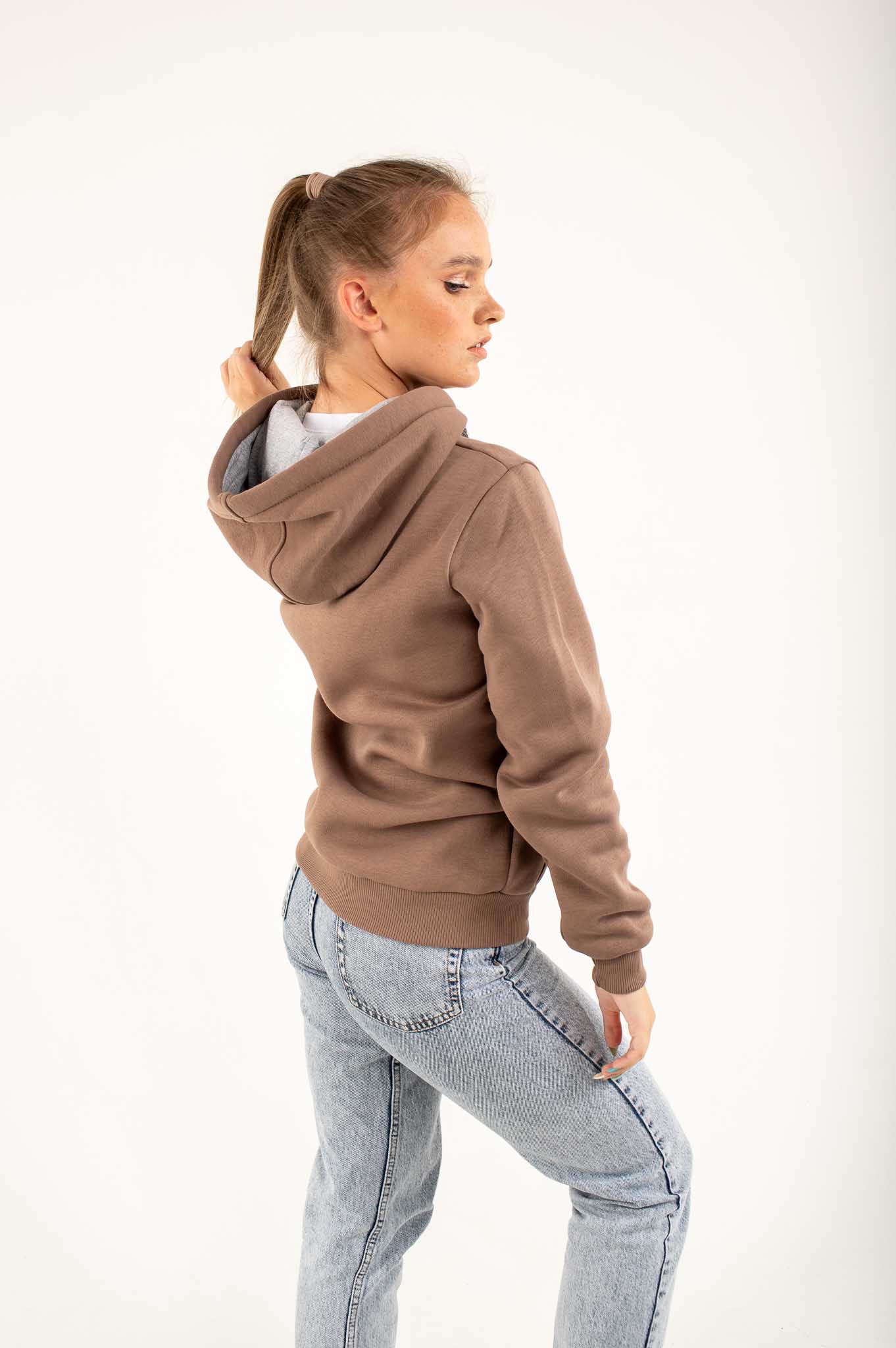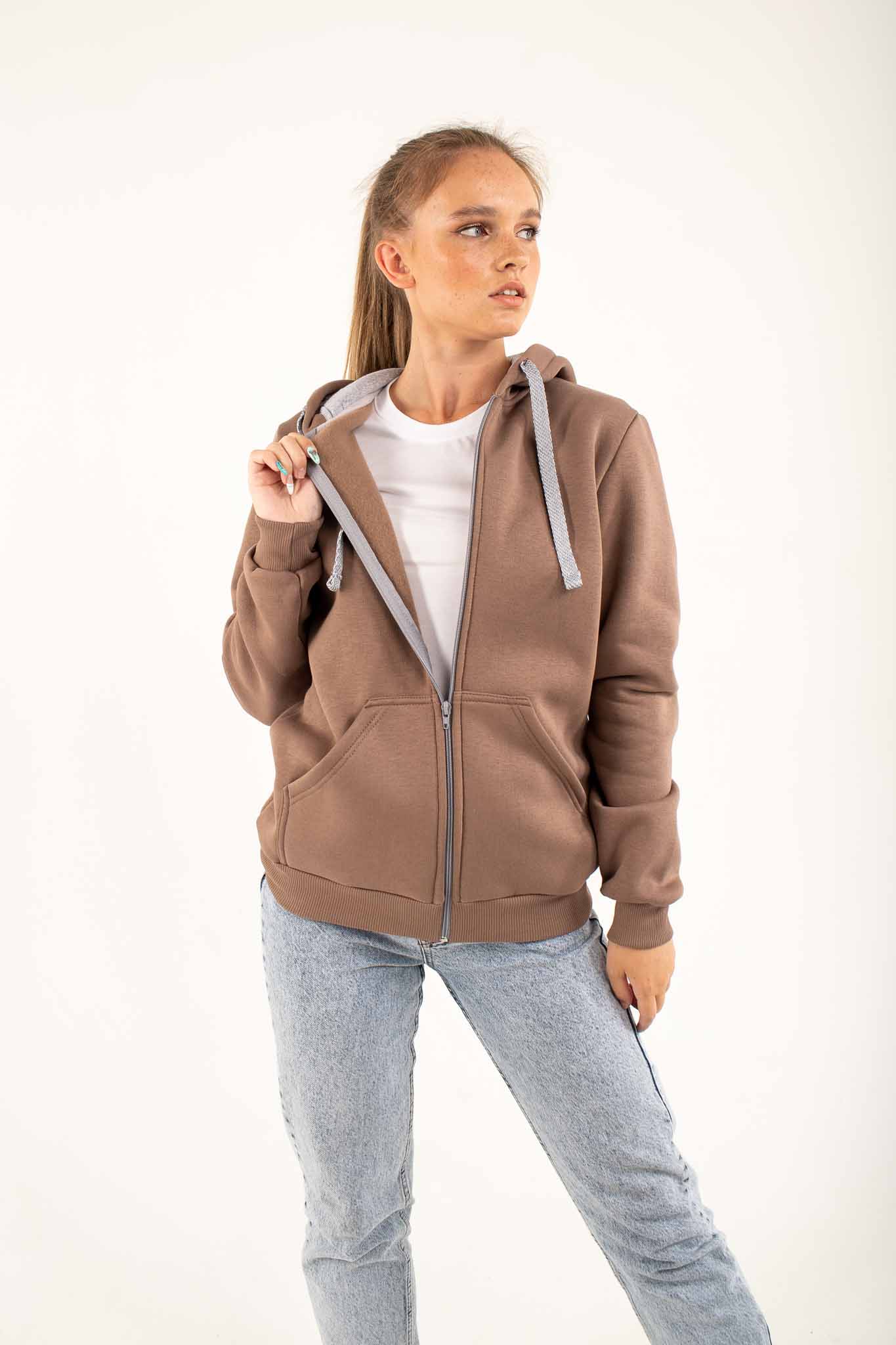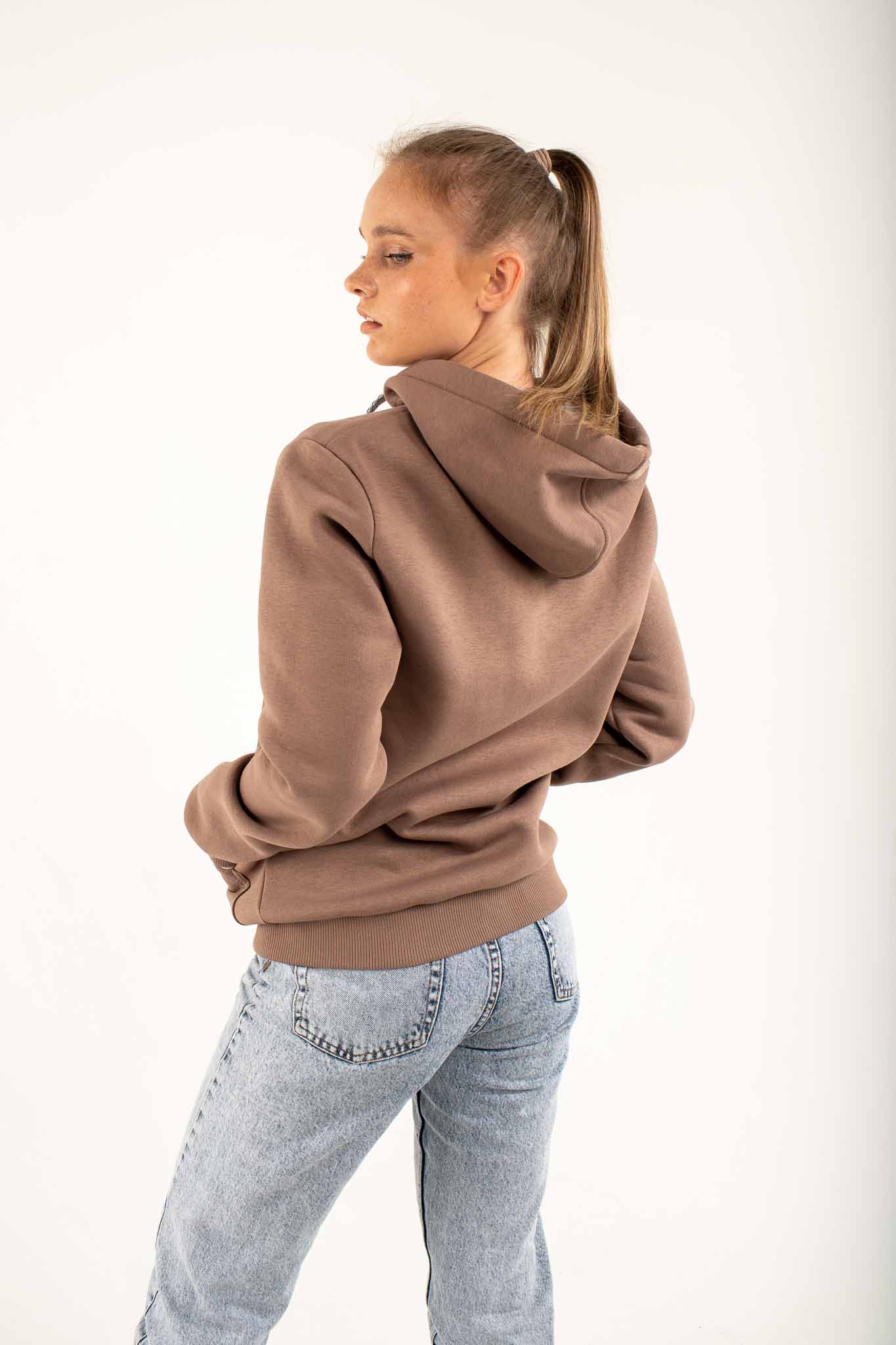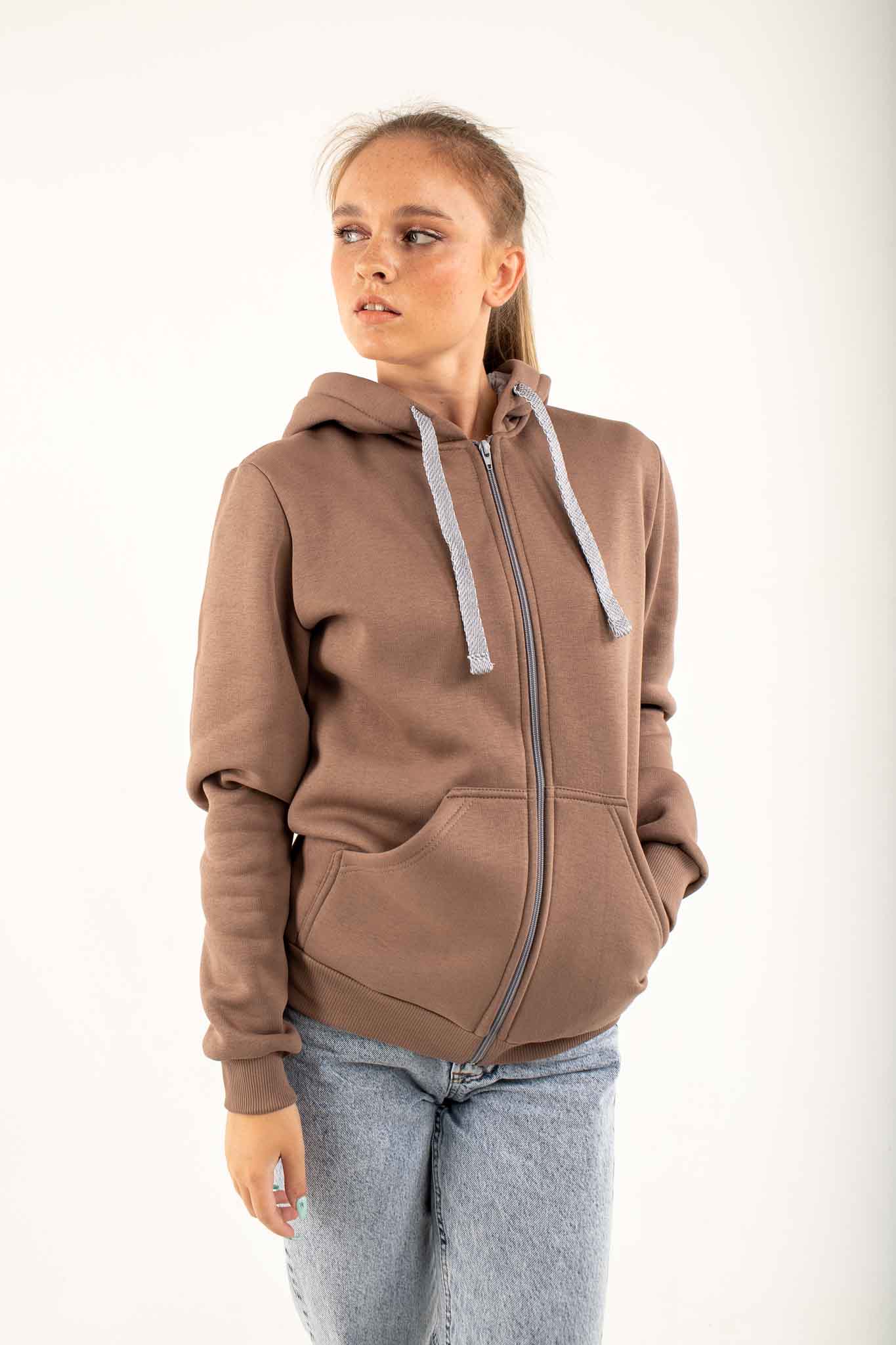 Верхняя часть капюшона отстрочена по среднему шву шириной 0,5 см — это подчёркивает аккуратность пошива. Застёжка на молнию также отстрочена с шириной шва 0,5 см, обеспечивая прочность и эстетичный вид. Длина изделия — до середины бедра, что делает худи универсальным: не слишком длинное, не слишком короткое — идеально для любого роста.