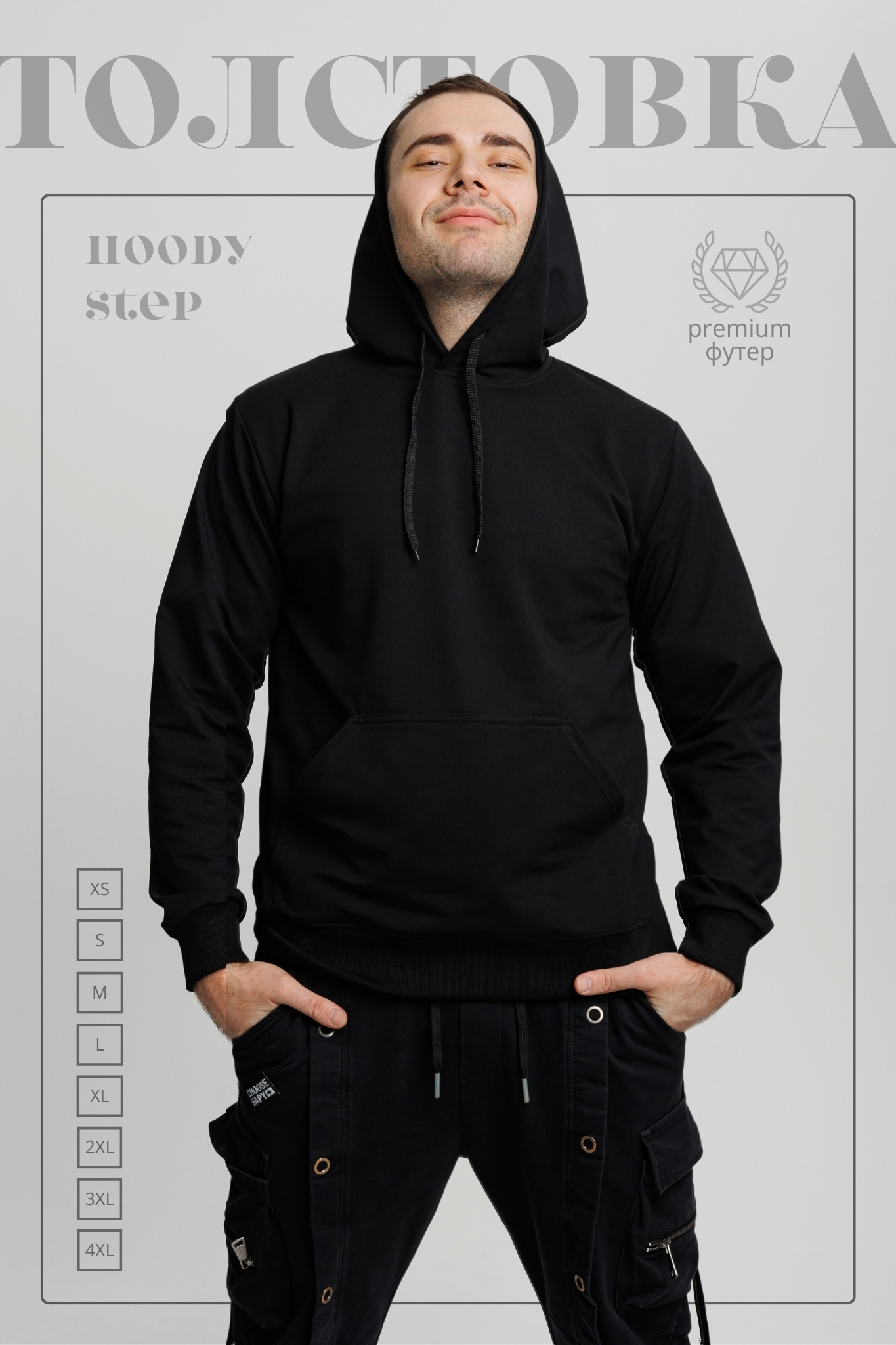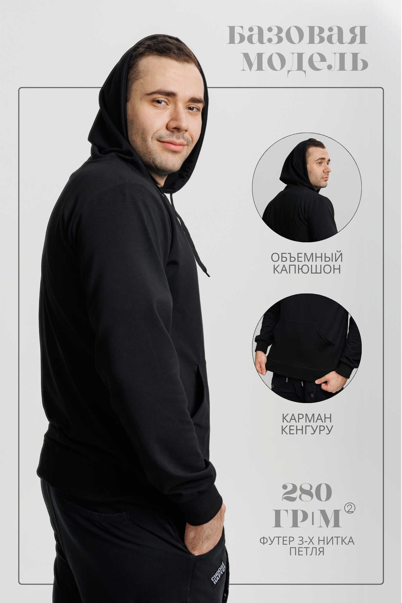 Толстовка Худи CLASSIC черная - Худи прямого классического кроя, на полочке накладной карман «кенгуру».