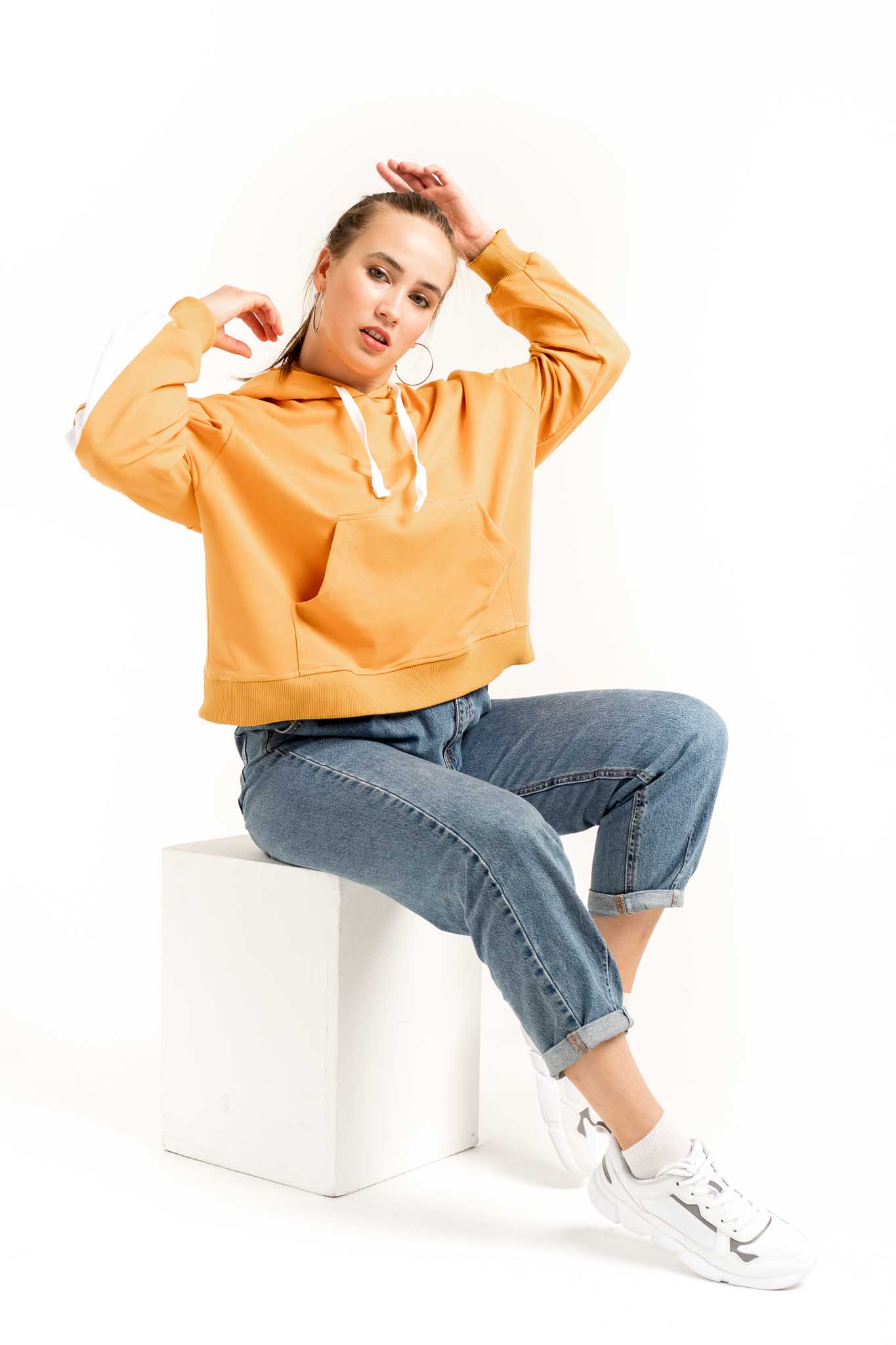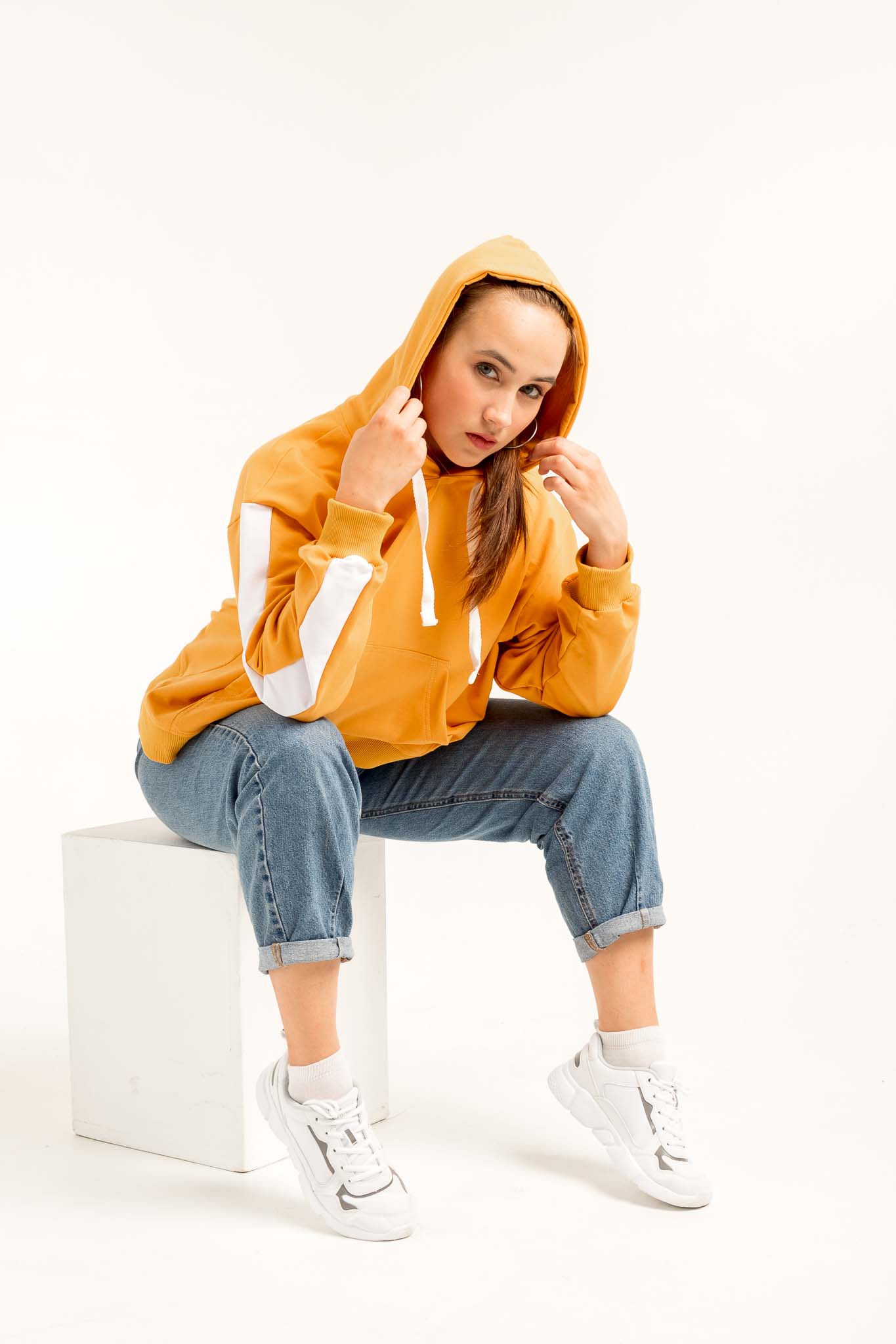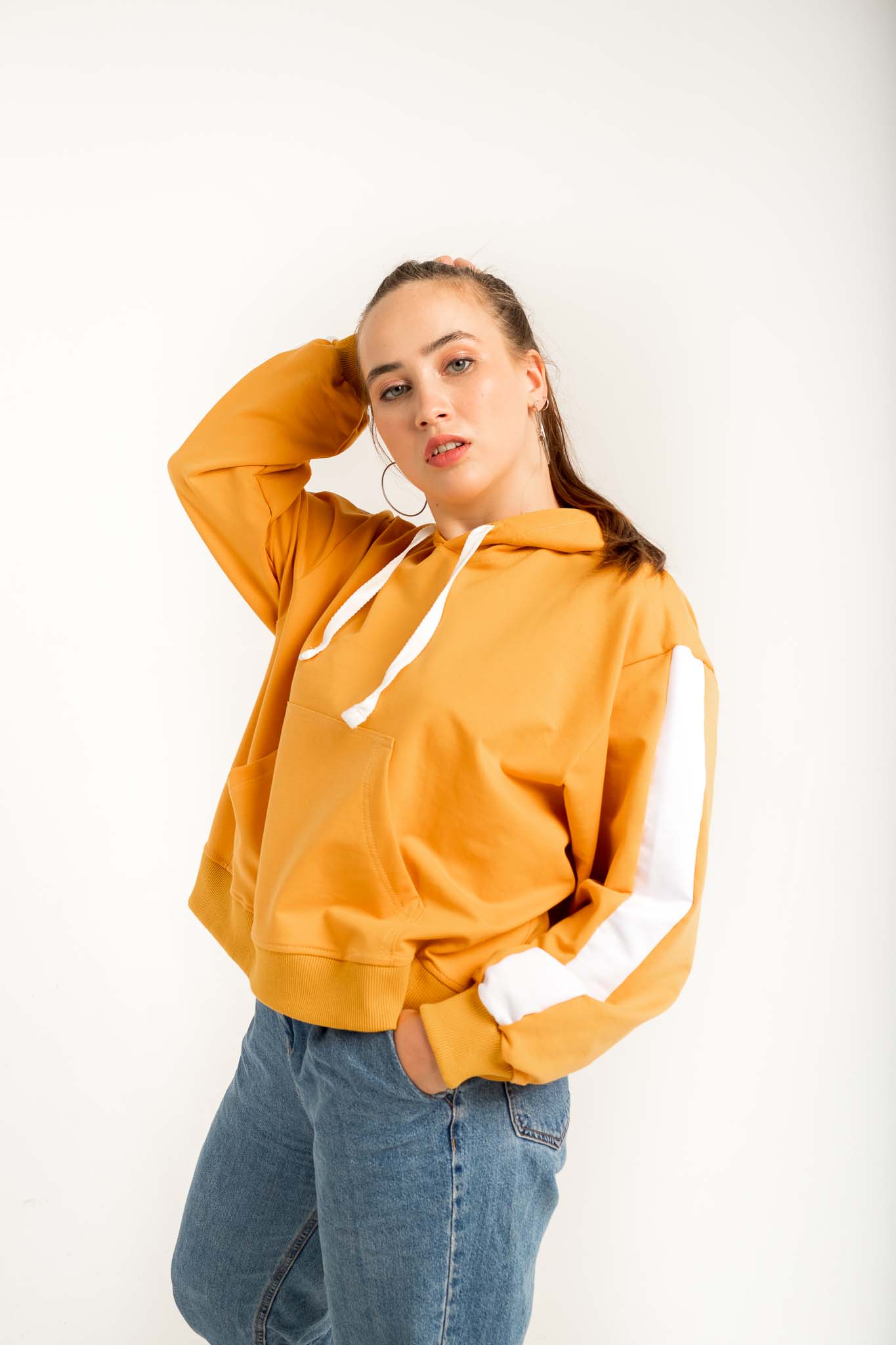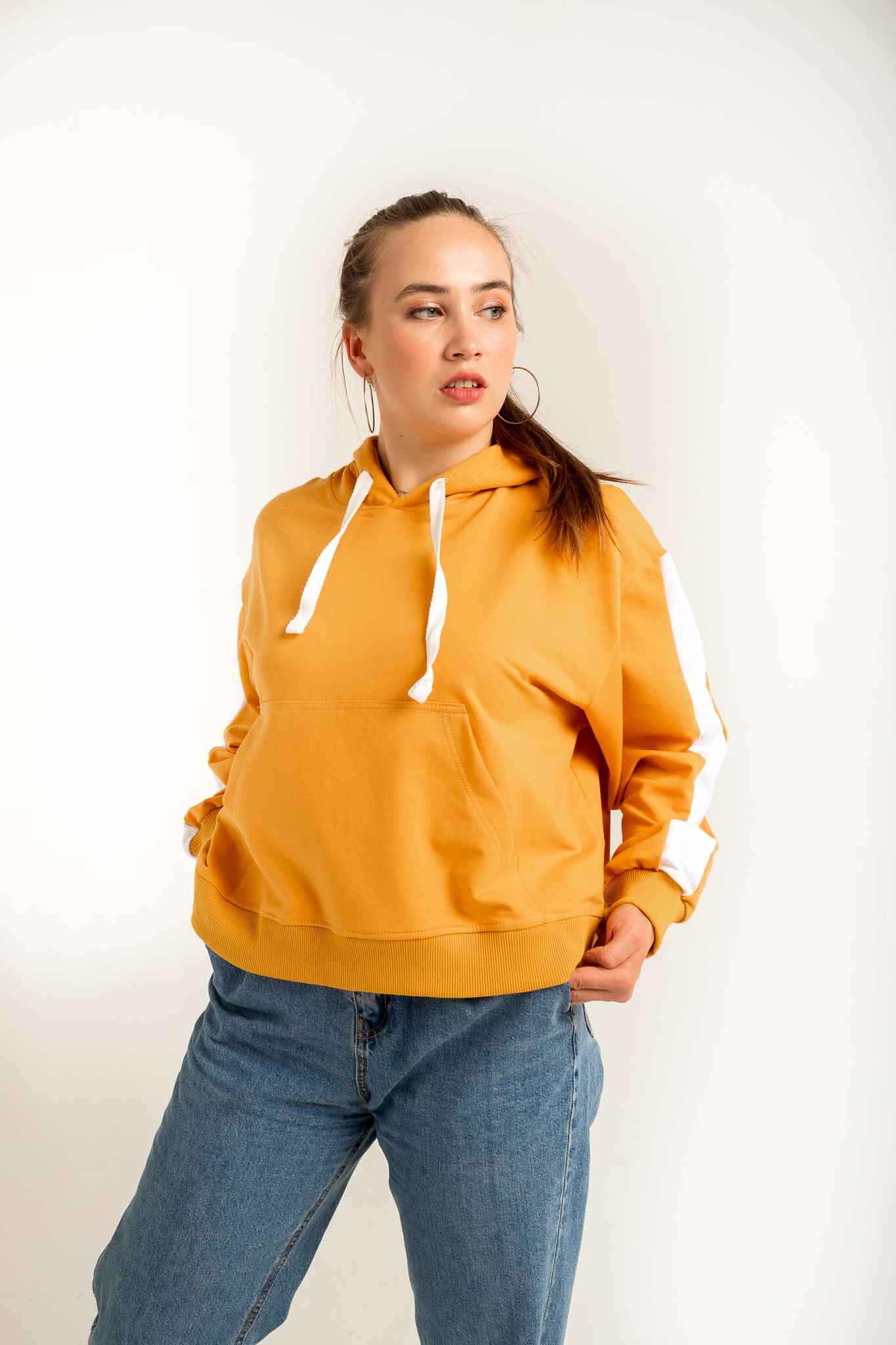 Толстовка NarpiStripe Women - худи, умеренного оверсайз объема, рукав втачной с лампасами, спущенная линия плеча