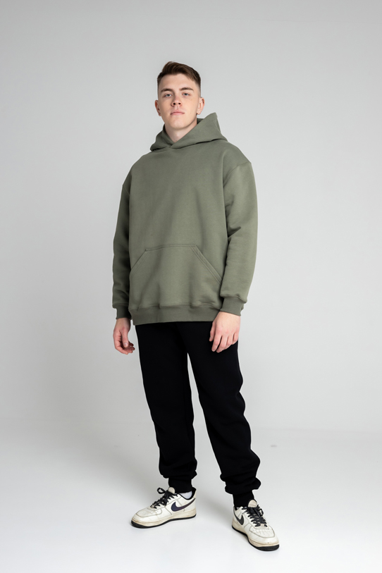 Эта толстовка для настоящих мужчин изготовлена из очень плотного футера 490 г/м², что обеспечивает надежность и долговечность. Оверсайз фасон и прямой силуэт создают комфортный и стильный образ, а длина до середины бедра добавляет универсальности. Большой объемный капюшон из трех деталей с декоративной отстрочкой швов придает модели уникальный характер, а шов втачивания капюшона по спинке аккуратно закрыт киперной лентой для дополнительного комфорта. Накладной карман-кенгуру на полочке добавляет практичности. Втачные рукава с манжетами и притачной пояс из футера или кашкорсе обеспечивают идеальную посадку. Декоративная отстрочка по плечевым швам, пройме, а также швам притачивания манжет и пояса шириной 0,5 мм подчеркивает внимание к деталям. Эта толстовка станет отличным выбором для тех, кто ценит качество и стиль.