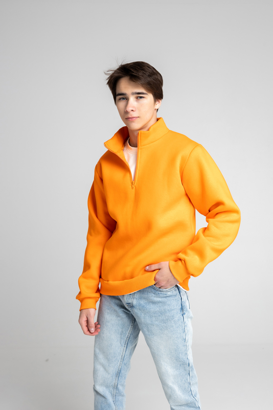 Эта экономичная толстовка из футера — идеальный выбор для оптовых заказчиков, стремящихся к стилю и функциональности. Прямой силуэт и классический объем обеспечивают комфорт, а короткая молния добавляет практичности. Длина до середины бедра делает её универсальной, а отсутствие карманов помогает сэкономить бюджет. Воротник-стойка и втачные рукава с манжетами из футера или кашкорсе придают модели завершенный вид. Низ изделия обработан поясом из кашкорсе для дополнительного комфорта. Просто добавьте свой логотип, и эта толстовка станет отличным решением для вашей команды!