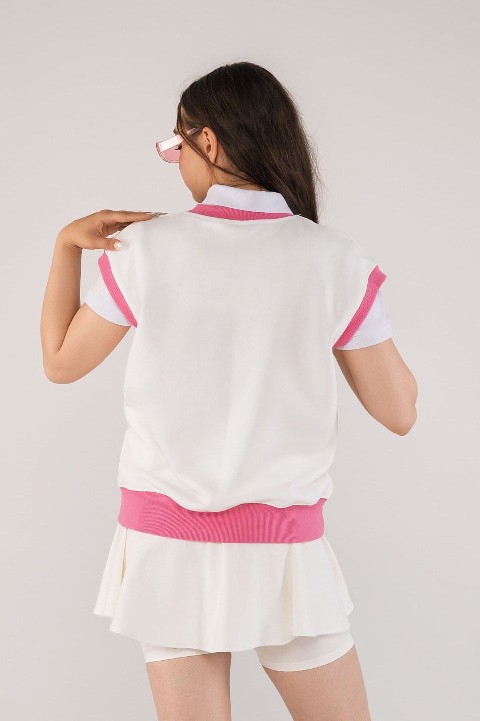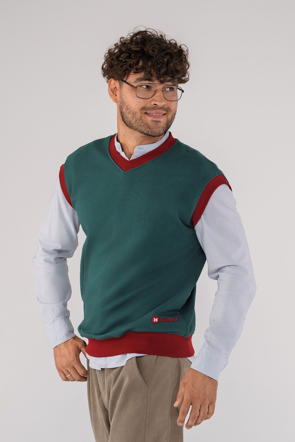 Для дополнительной отделки по горловине, проймам и низу проложена строчка в цвет основы — она не только улучшает внешний вид, но и повышает функциональность изделия. Жилет легко носится как самостоятельно, так и в комплекте с футболкой или худи.