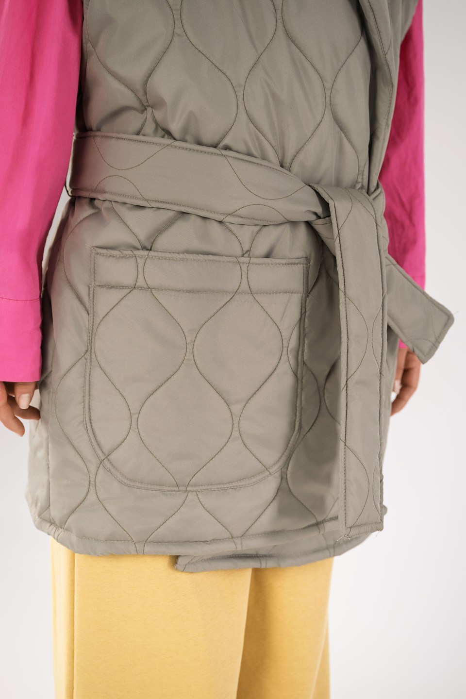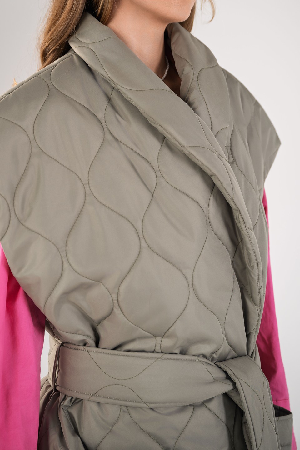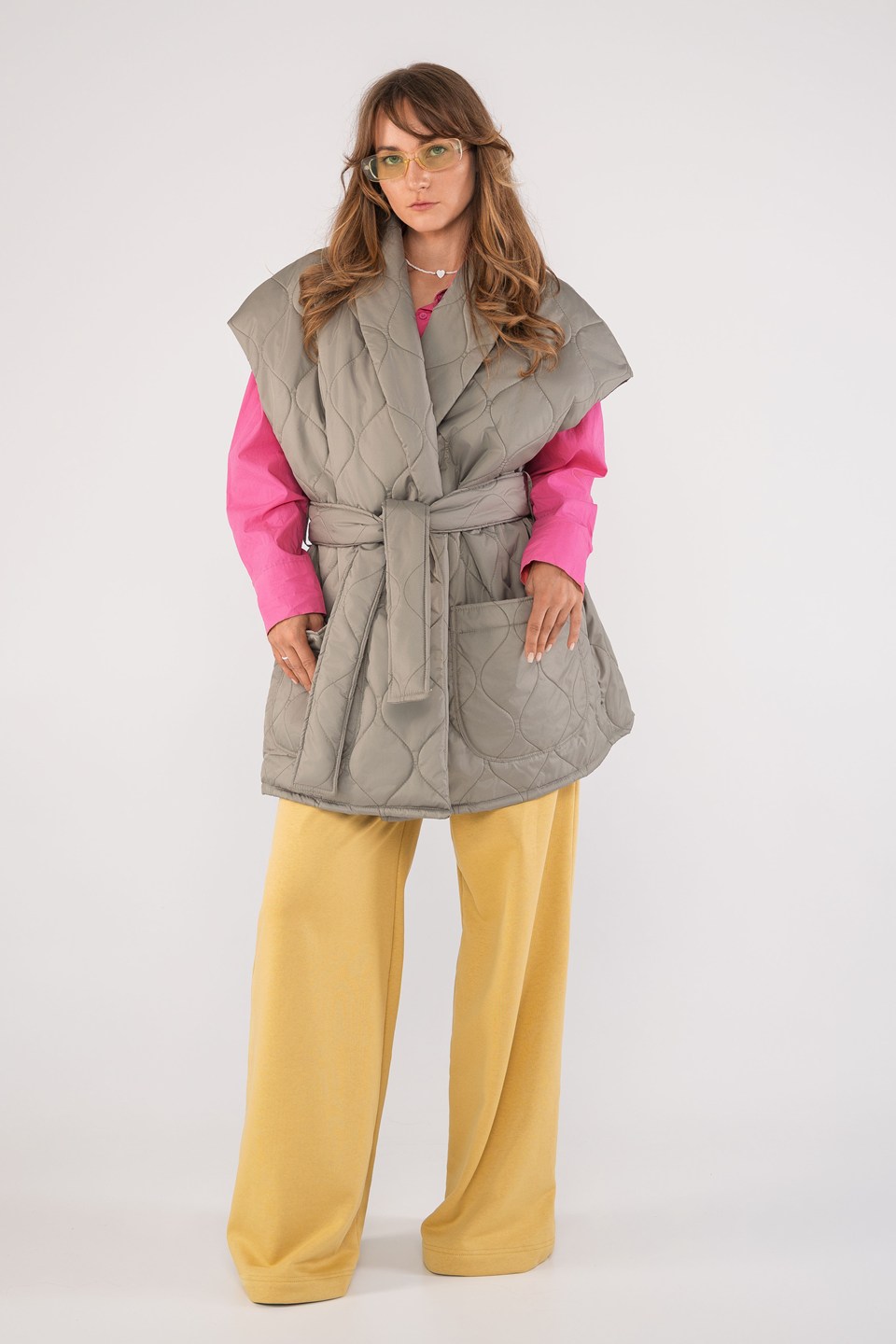 Женский жилет — это стильное и функциональное изделие, выполненное из прочной плащевой или курточной ткани с внутренним подкладом. Модель прямого кроя, умеренного объема, с длиной ниже бёдер — идеально подходит для повседневной носки и создания профессионального образа.