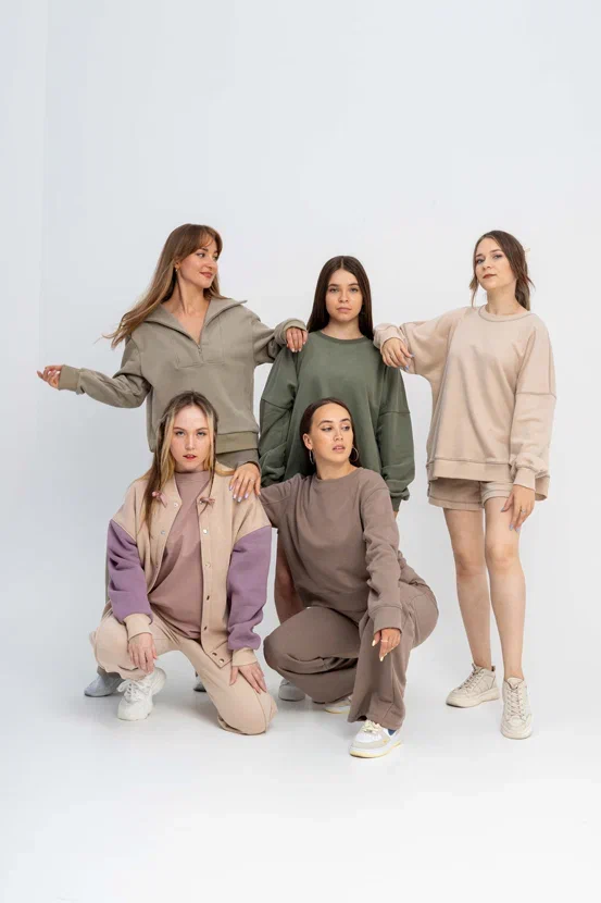 Чувство нежности и уюта – первые ассоциации, приходящие на ум, при виде моделей из нашей новой коллекции. Природная палитра оттенков в сочетании с приятными тканями и комфортной посадкой стали основой при разработке этой линейки. Она включает в себя легкие и объемные футболки, просторные и мягкие свитшоты, теплые худи свободного силуэта, а также практичные бомберы и брюки.